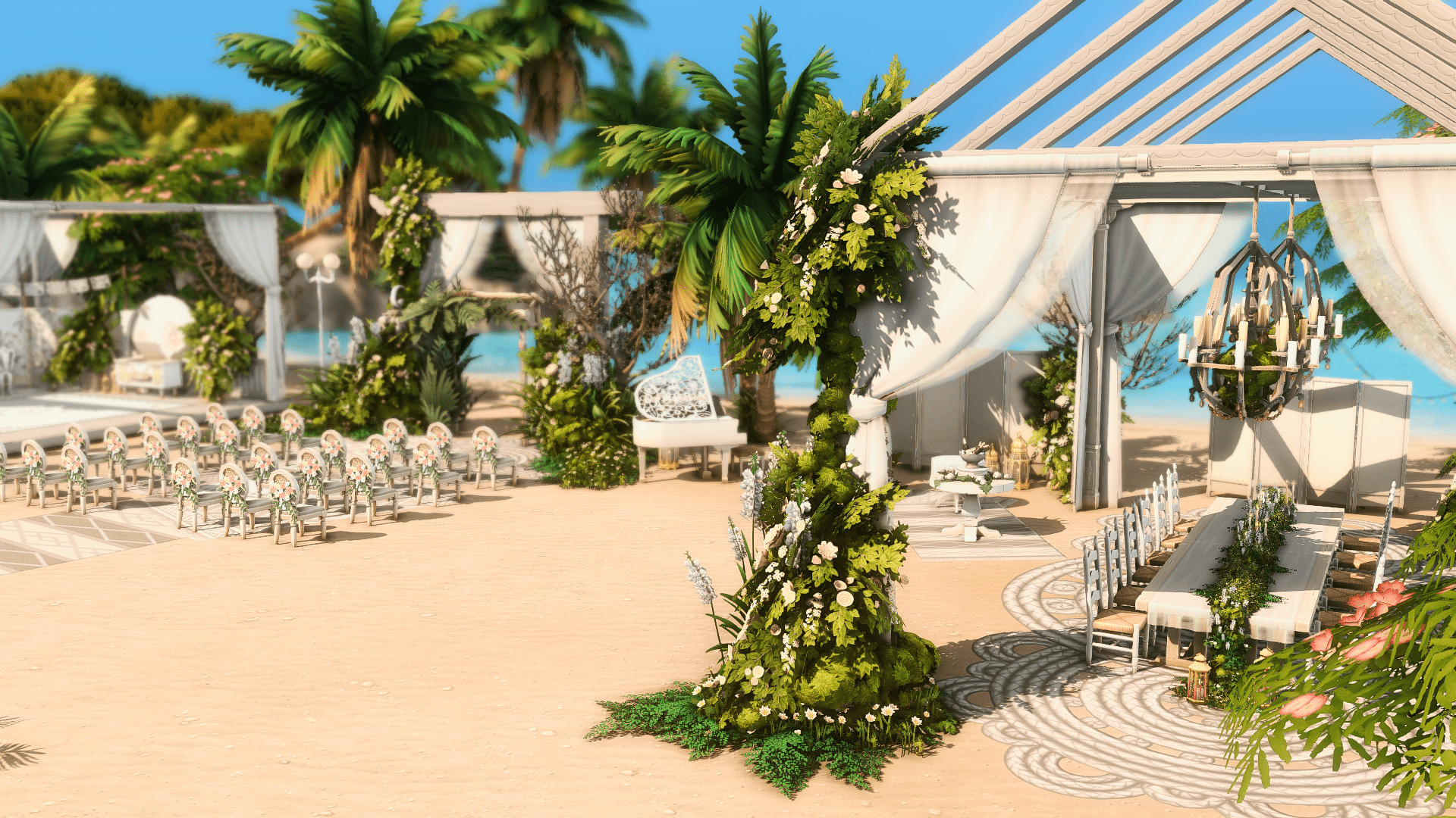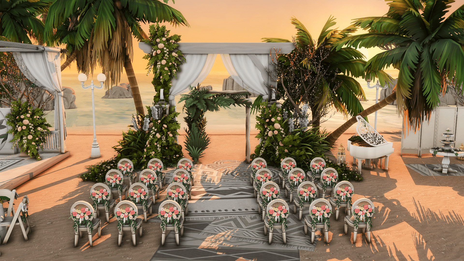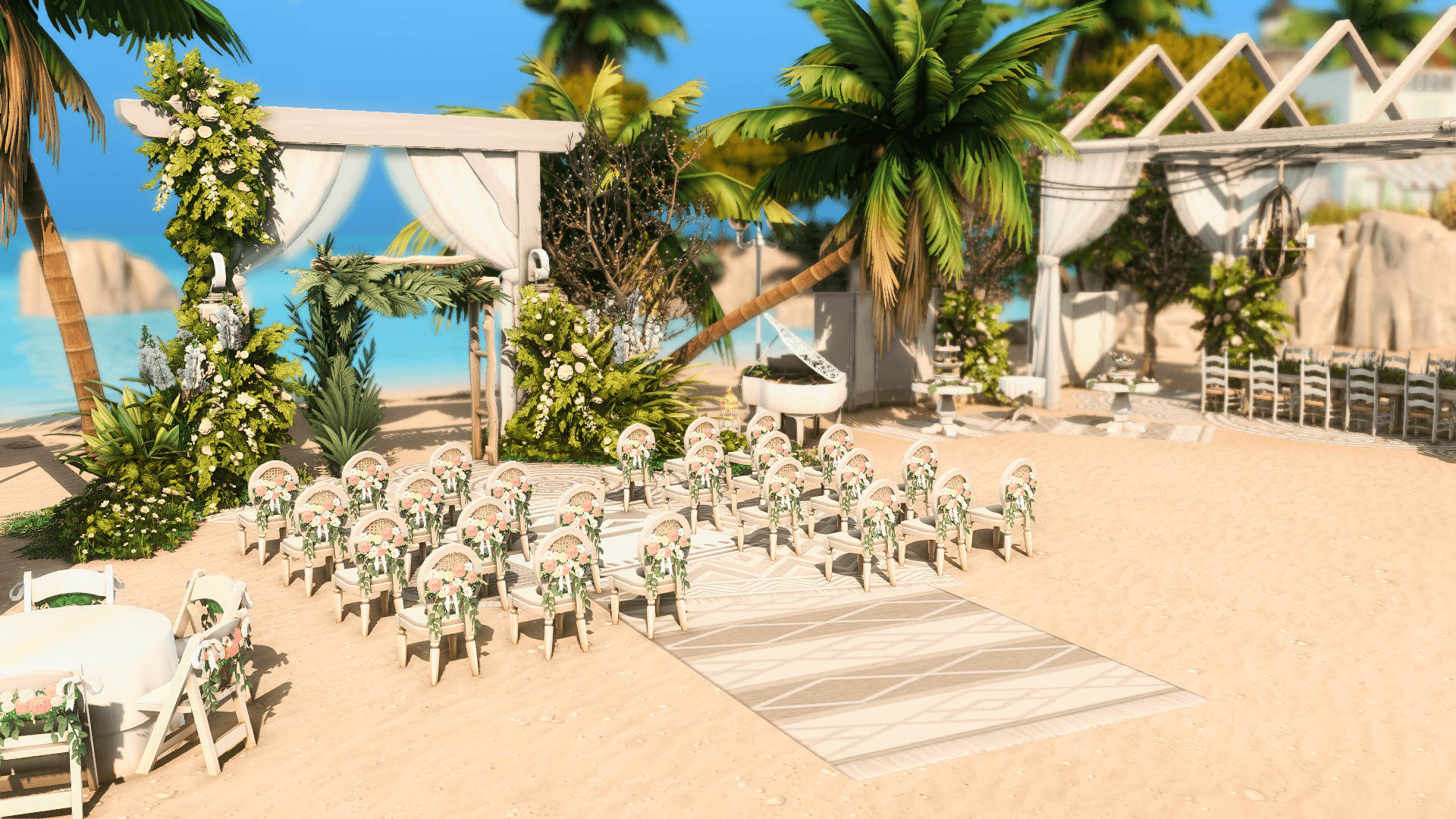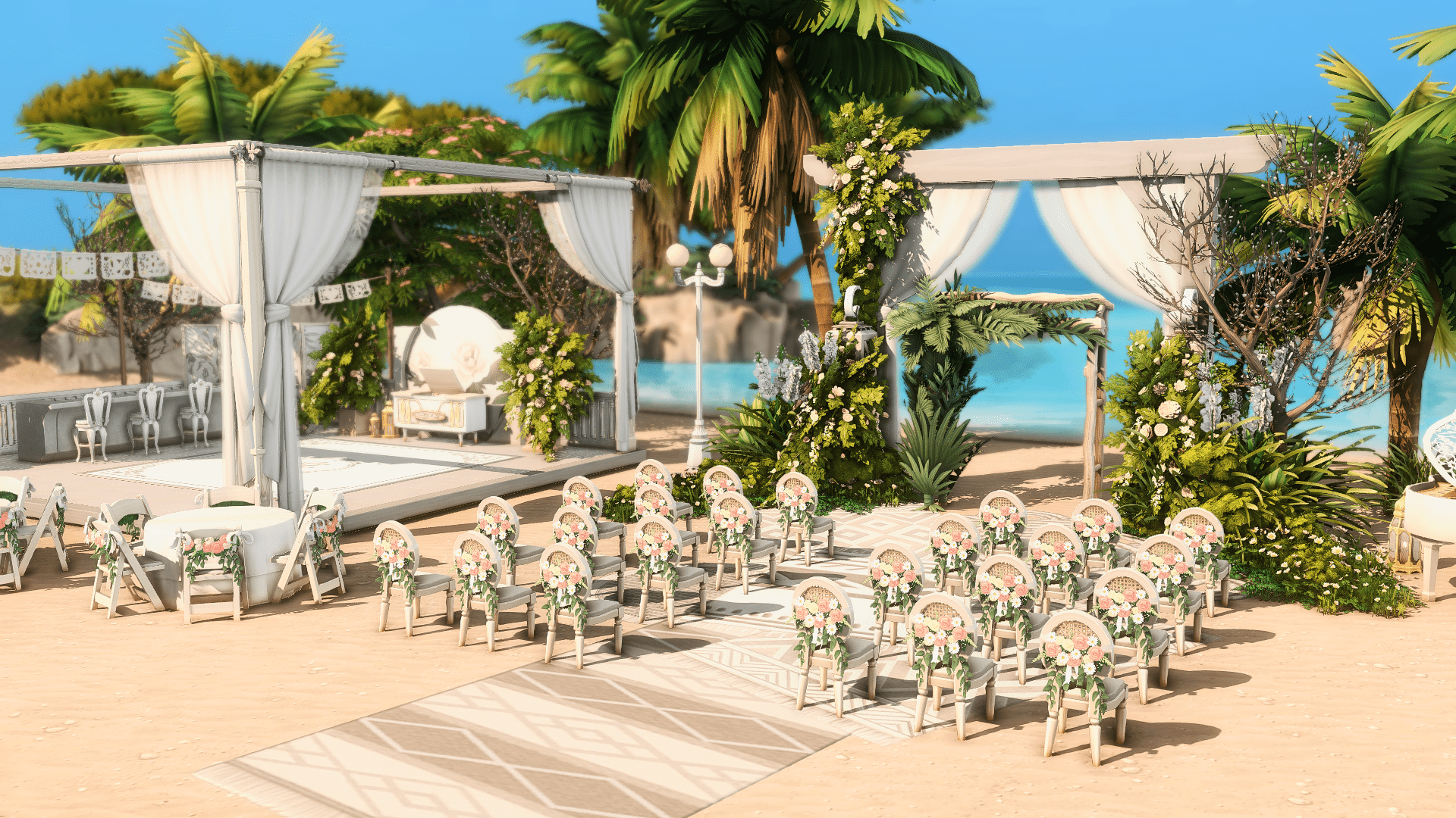 Imagine the most romantic place for your Sims tie the knot. With this beautiful lot your Sims are ready to enjoy the moment of their lives! This lot is a wedding venue and was built thinking of a complete wedding ceremony.