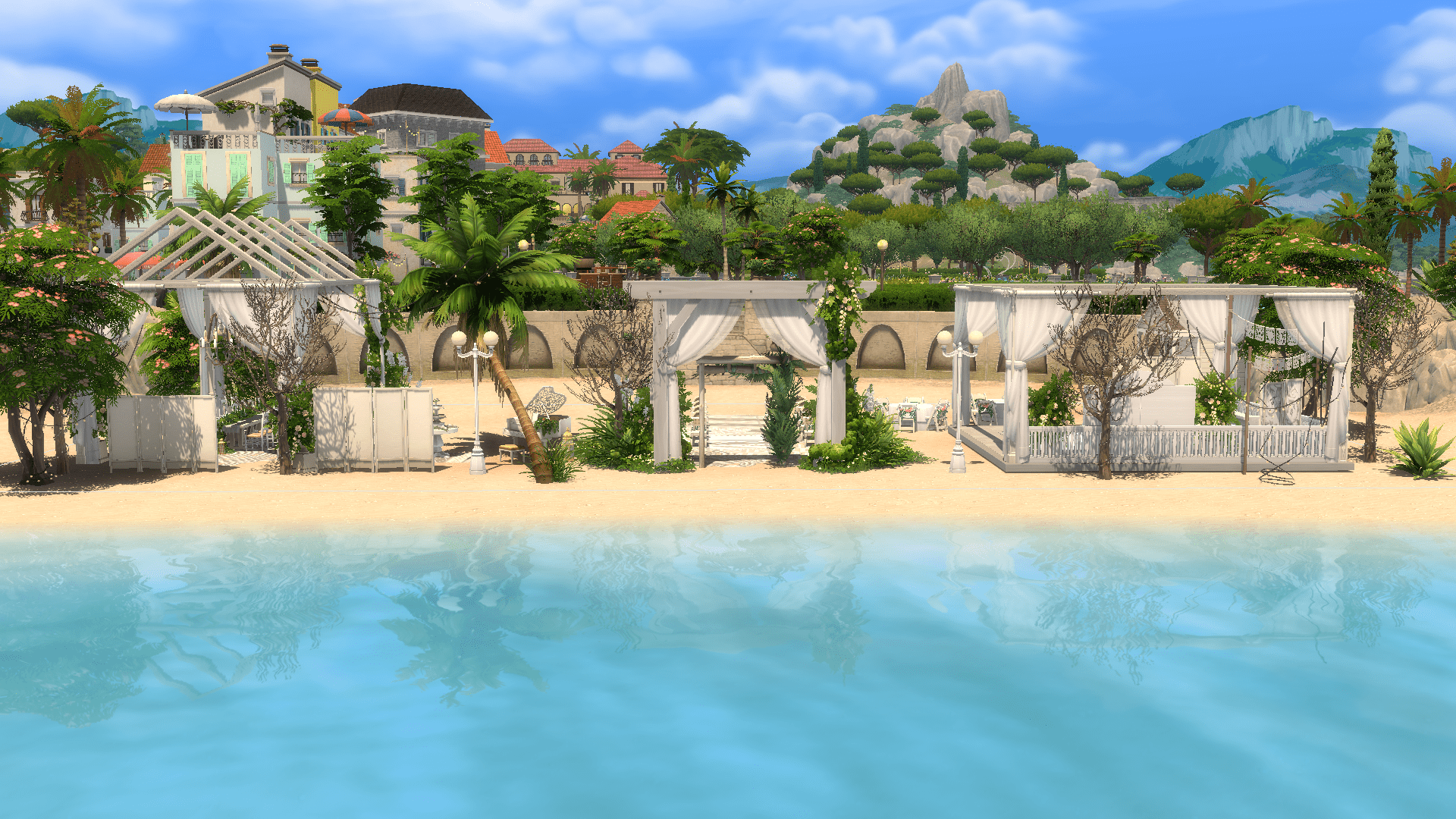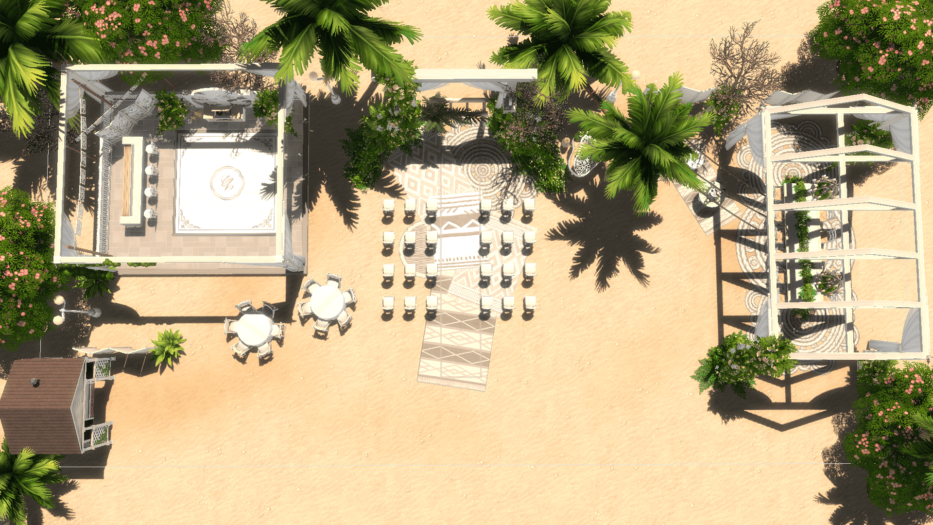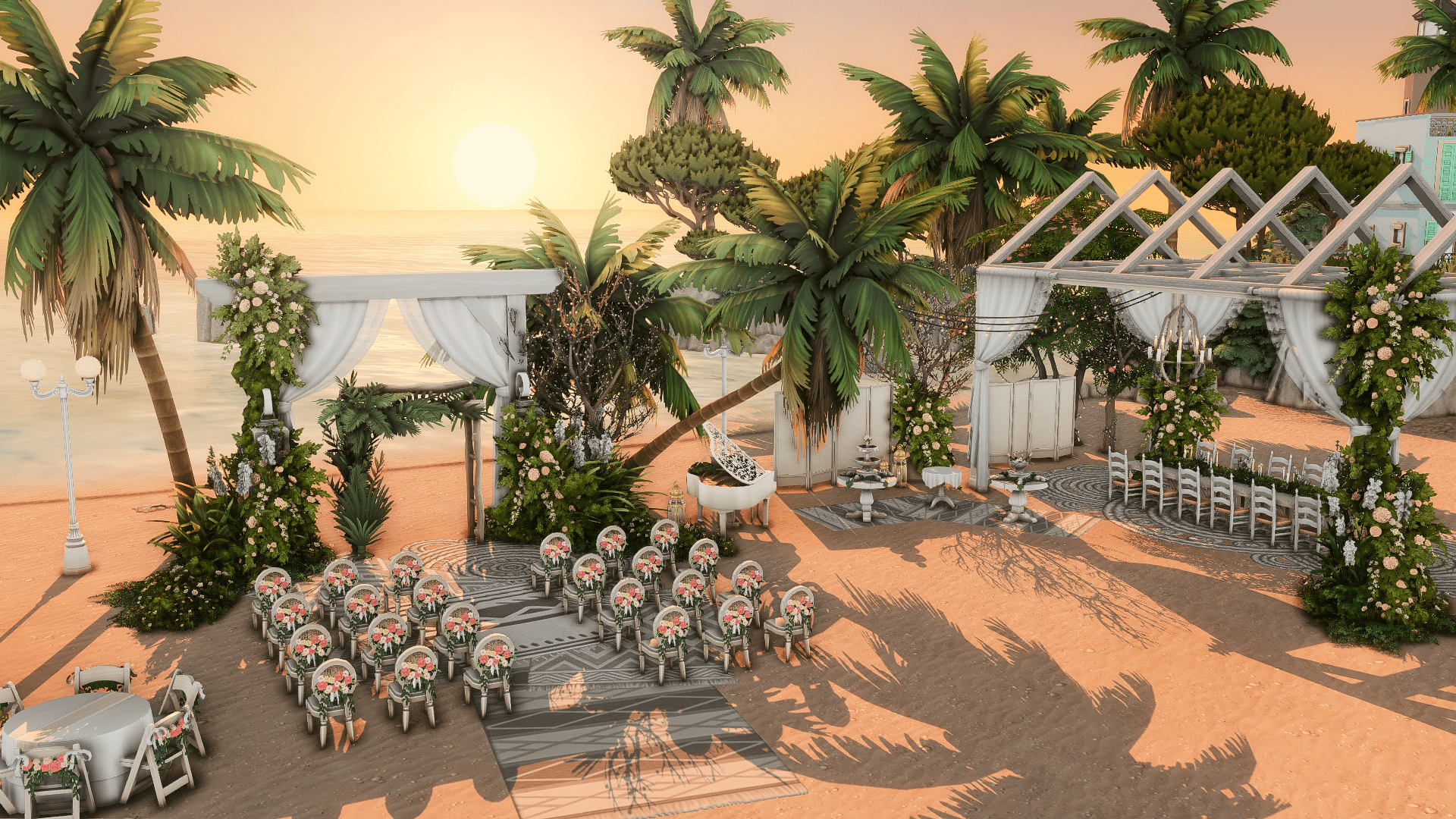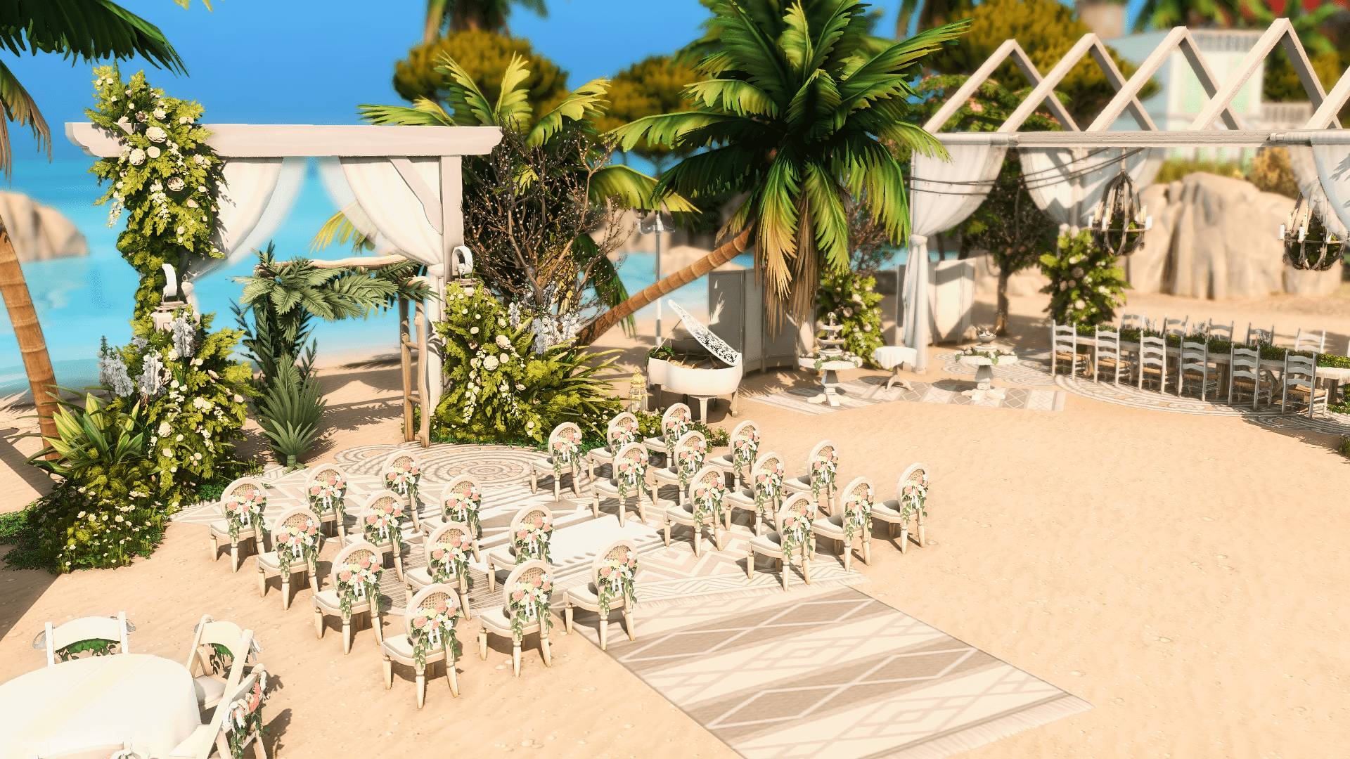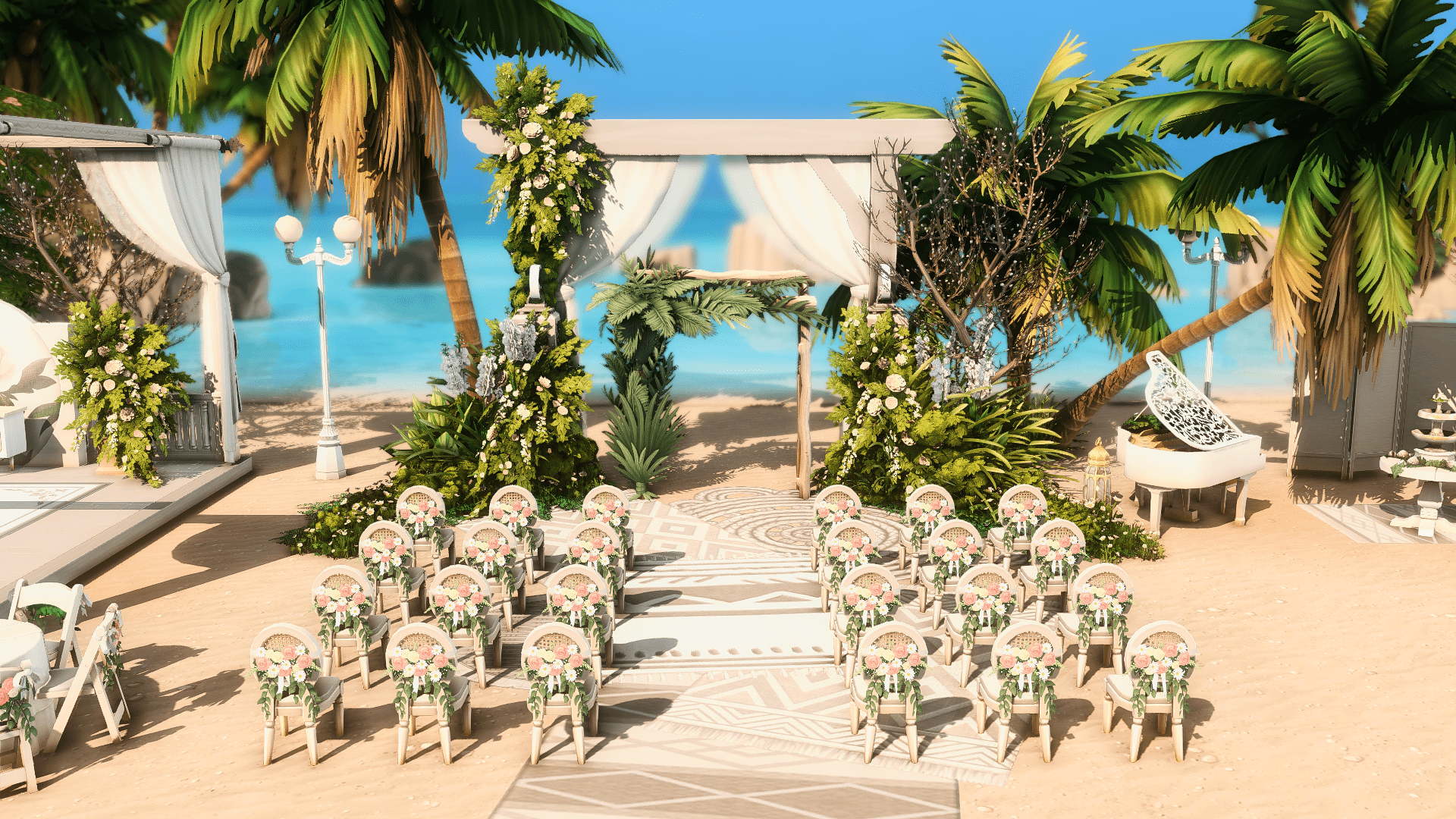 Imagine the most romantic place for your Sims tie the knot. With this beautiful lot your Sims are ready to enjoy the moment of their lives! This lot is a wedding venue and was built thinking of a complete wedding ceremony.