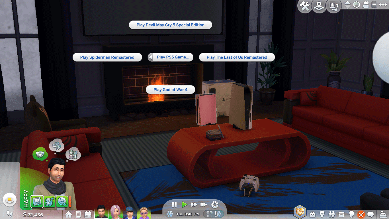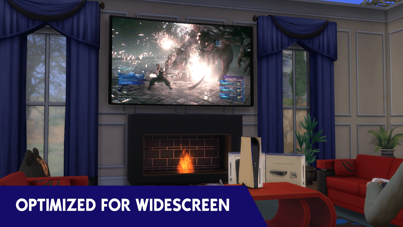 Now instead of the tiresome default games, you can now play titles like Final Fantasy 7 Remake, The Last of Us, Devil May Cry 5: Special Edition, Spiderman Remastered, and more! Now your sims don’t have to pretend that they’re having fun