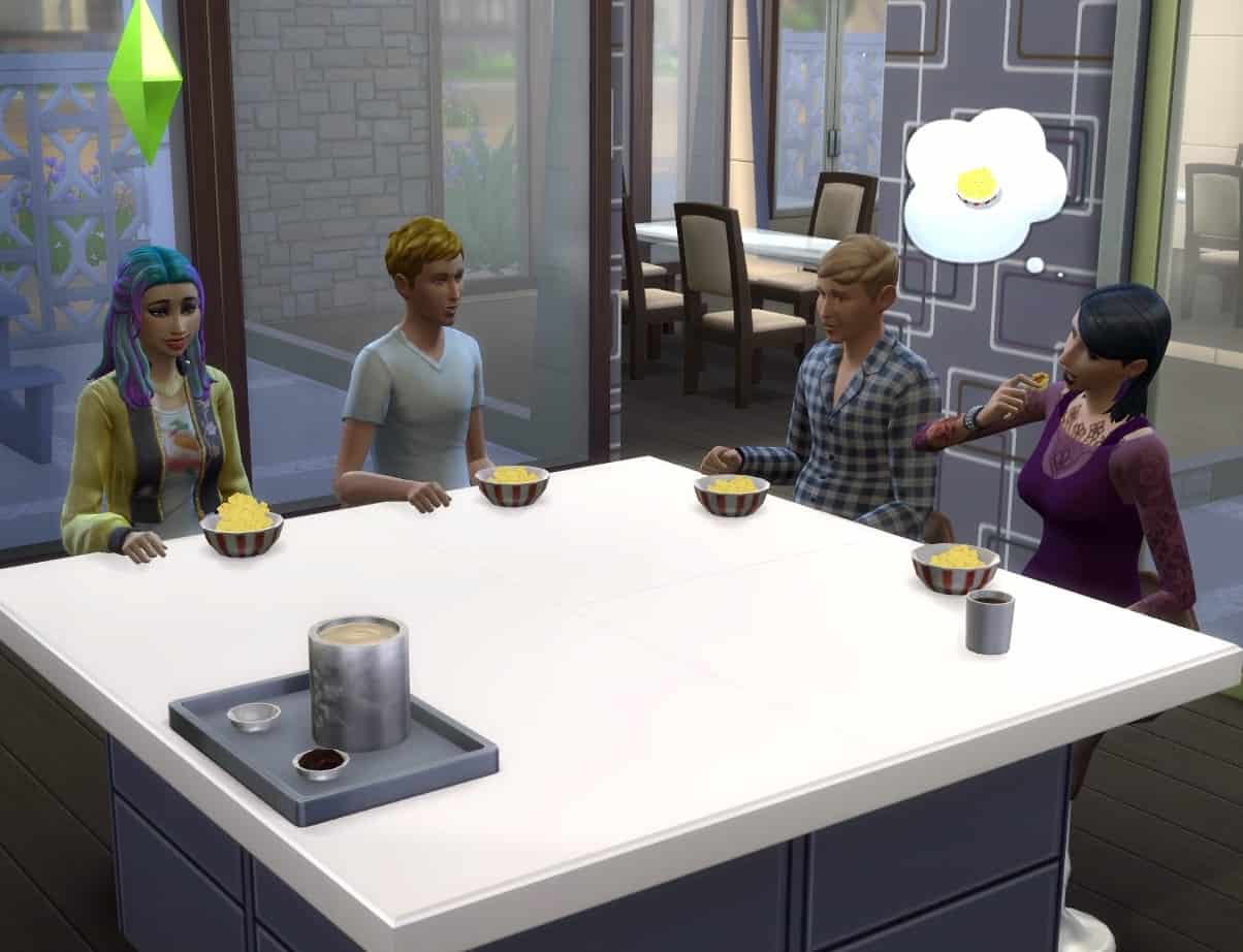 When playing some challenges, such as the Decades Challenge, you may not want everyone rushing to the kitchen when they get a little hungry. Perhaps, you plan for one particular Sim in the family to cook a group meal and you want everyone else to wait to eat!