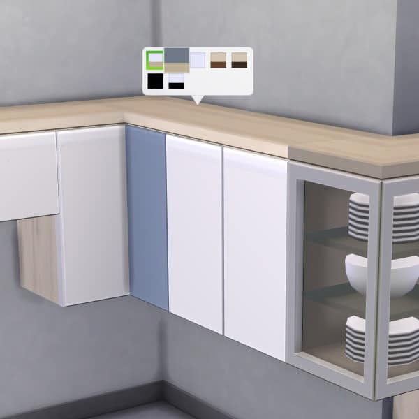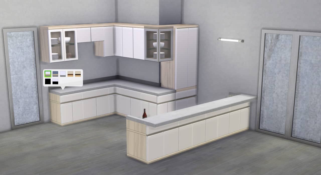 or the standalone, which adds new objects to the catalog (recolors only, no meshes), leaving the original ones untouched, so you could use this with another mod that alters the meshes (and adds more slots to the countertop for example)