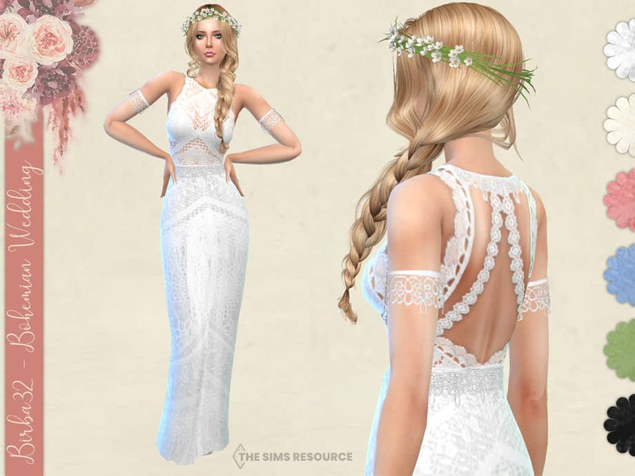 A long dress with a rich lace, typical of Bohemian’s brides, sumptuous and elegant in its simplicity. Six colors.