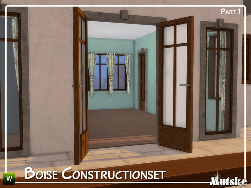 This set contains a lot of windows, arches and doors. There are also mathcing curtians. All windows have slots, you might need to use bb.moveobjects to put on the clutter. There will be 3 parts to this constructionset. Make sure that your game is fully patched and up to date for this set to show and work correctly in the game. Have fun playing!