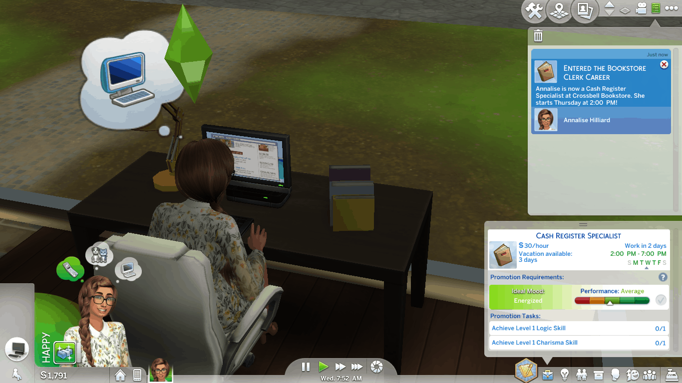 Stand firm behind the cash register, but make sure every Simoleon is accounted for! Don’t forget to ask if they want a receipt! Always have a recommendation ready for our curious and lost customers! Do NOT ever EVER leave customers waiting for too long just so you can finish reading that one chapter!