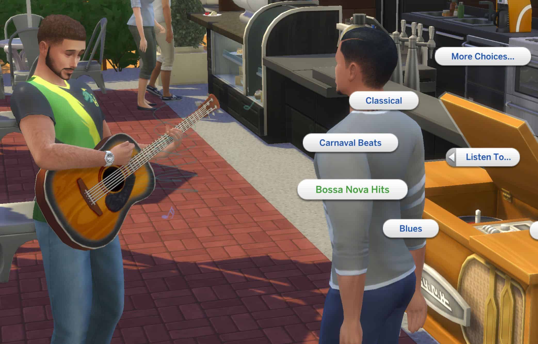 The Bossa Nova Hits will be available on all stereos and music devices and show up as a choosable and developable Preference Trait in CAS. It is not for the energetic dancing, no. But it delights for slow-dancing with your Signifcant Sim.