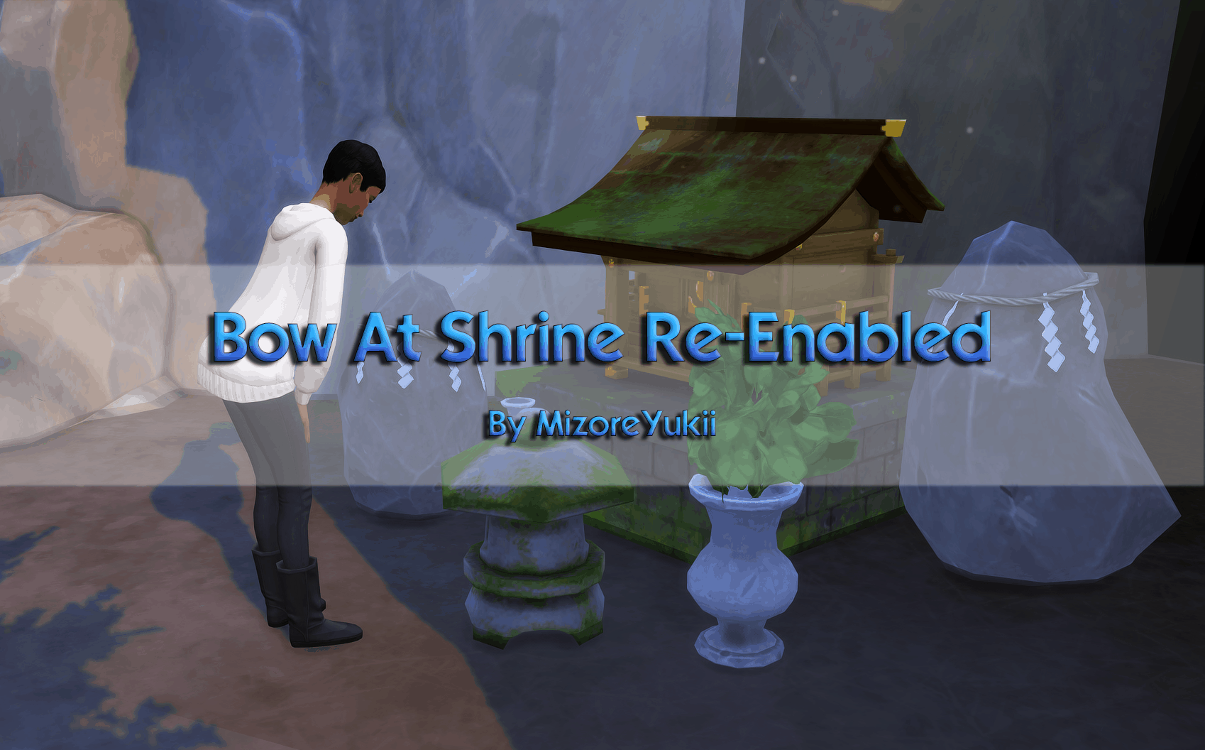 I understand why EA had to remove this interaction but I know many also wanted this for their gameplay like I did, so here’s this interaction re-enabled for your sims, just click on the shrine and select “Bow”. You will need XML Injector for it to appear on the shrine since I did not want to override the object tuning to add this back.