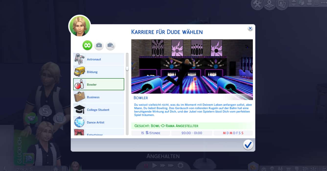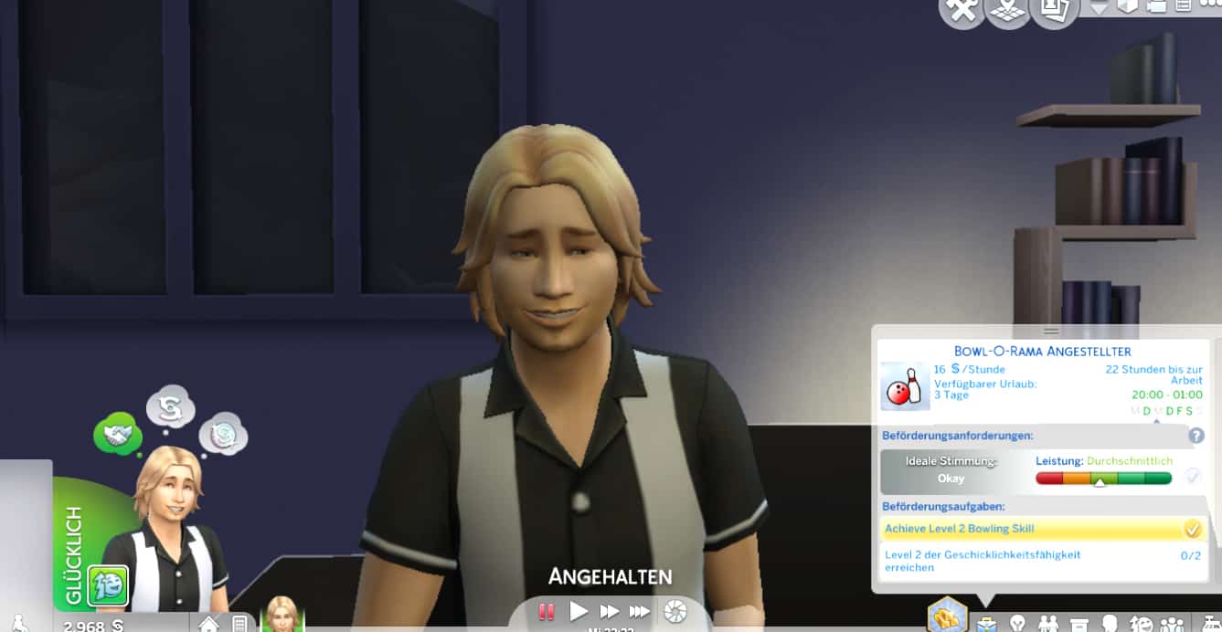 Sims start out as Bowling Center Employee and can work their way up to a Perfect Game Legend. Reaching the max career level is a not too easy task.