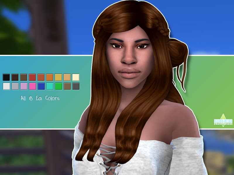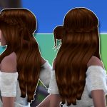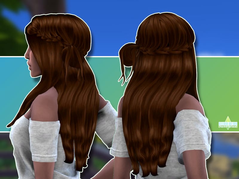 A Midlength half-up half-down slightly wavy hairstyle featuring a braid and messy bun.