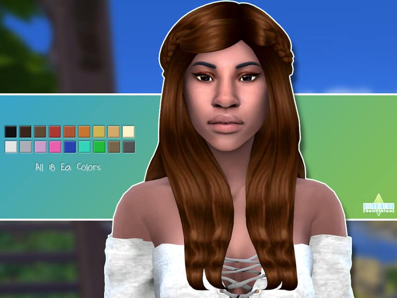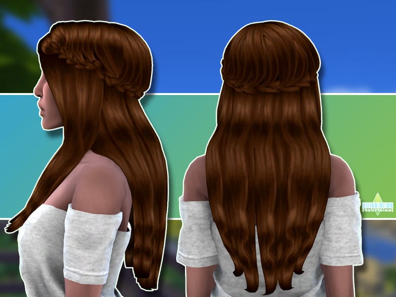 The second version of my Cassie hair. A Midlength half-up half-down slightly wavy hairstyle featuring a braid around the crown.
