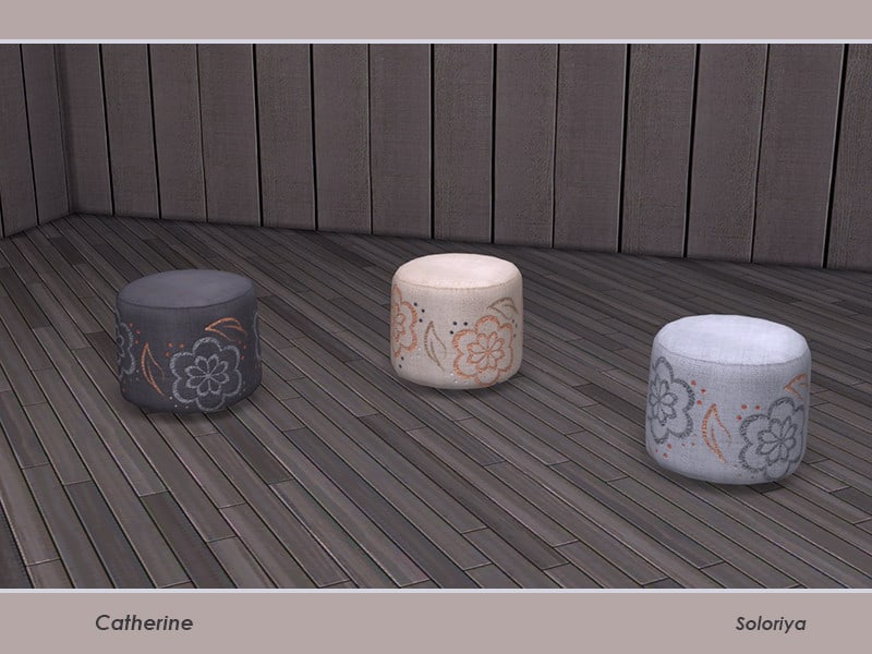 Round pouf with flowers. Part of Catherine set. 3 color variations. Category: Comfort – Miscellaneous.