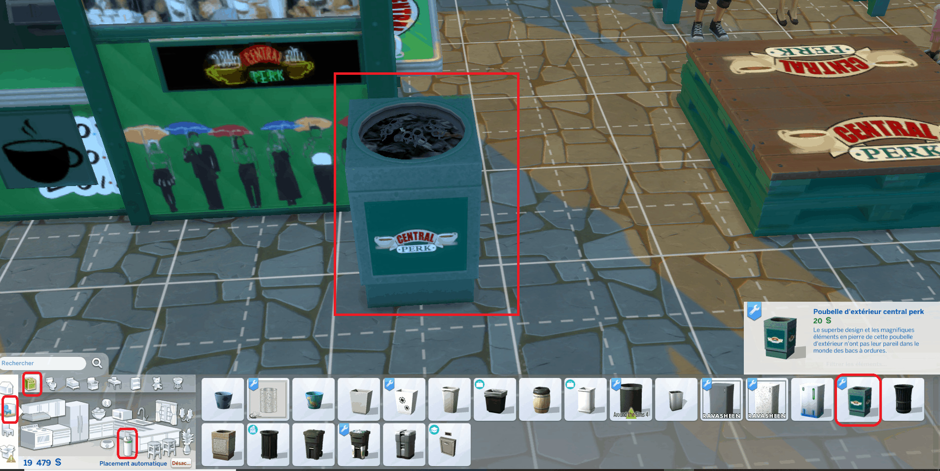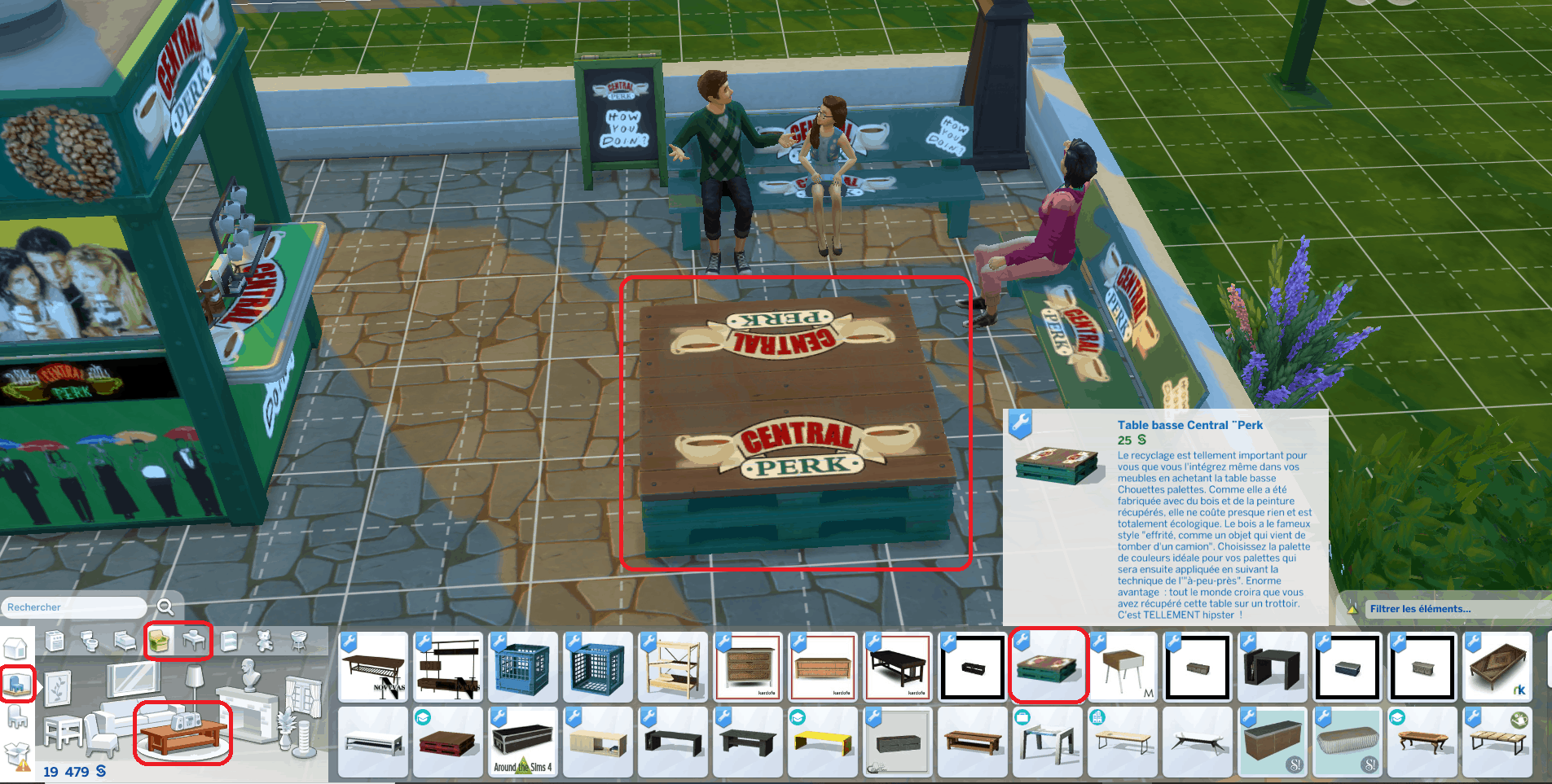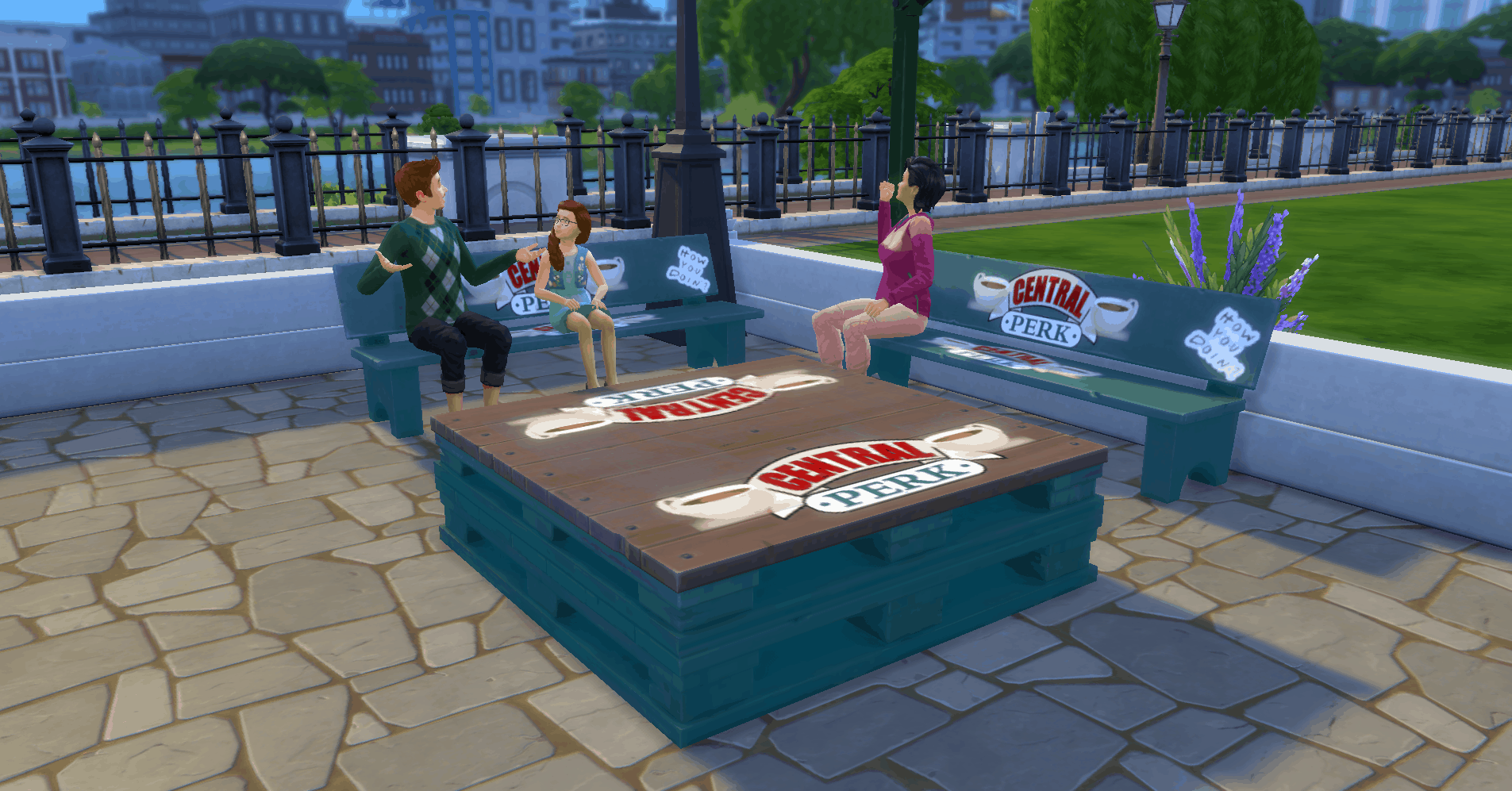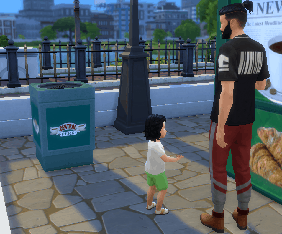 Buy coffee and cakes for your sims! Enjoy the little side park with coffee table, bench, bean and advertising board for your sims and his friends.