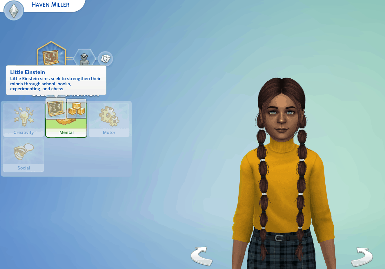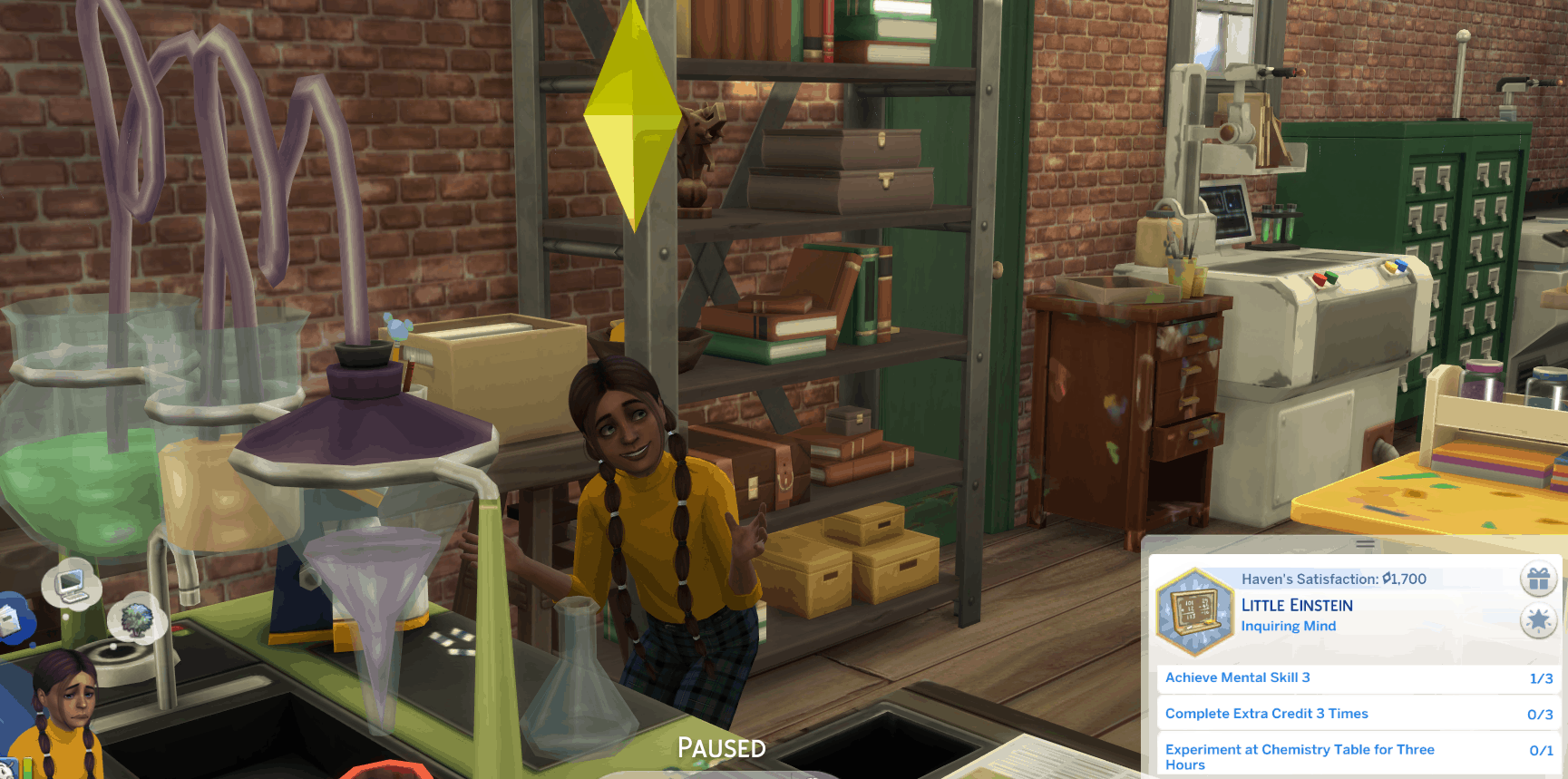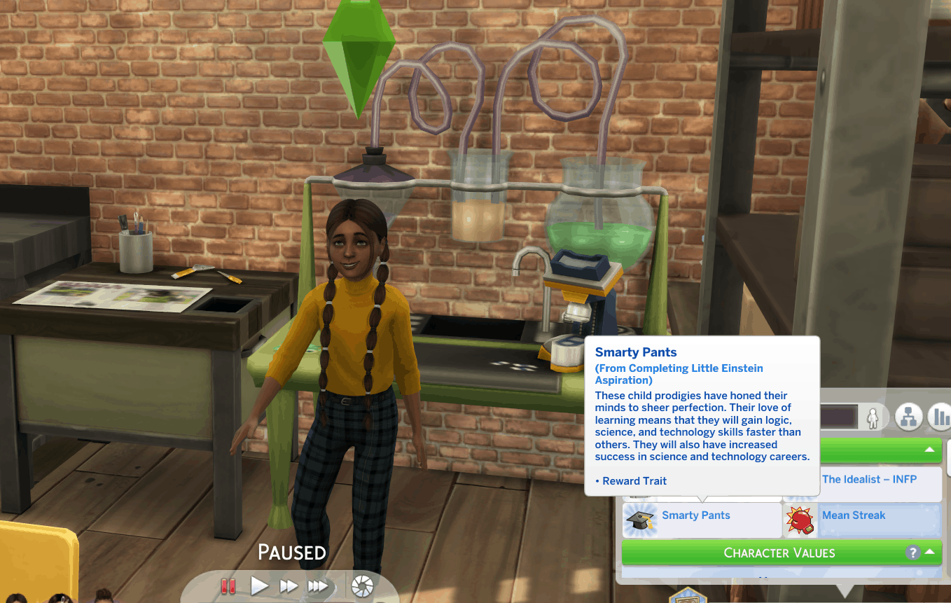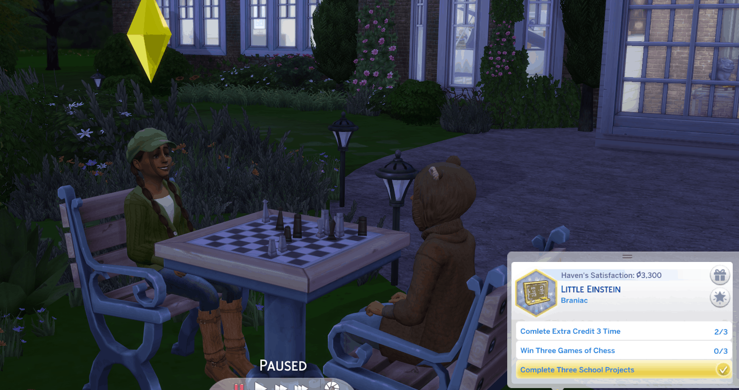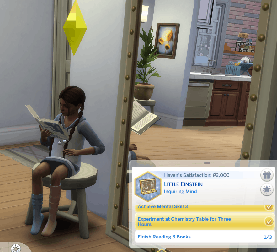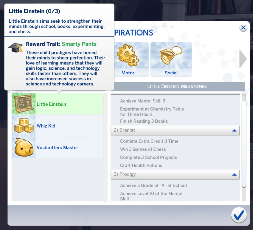 Little Einstein: Little Einstein sims seek to strengthen their minds through school, books, experimenting, and chess.