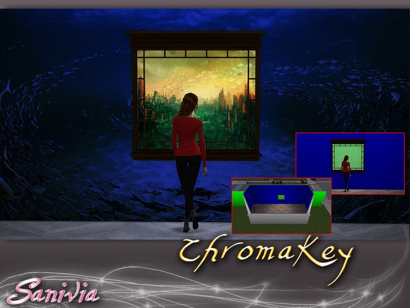 Those chromas were made as addition to kewai-dou’s photo studio set, because i missed some things while using it. So i made these walls to have larger greenscreen for the outside and backgrounds for my Lots by putting green walls behind them. I figured out several more ways to use my Walls and Floors while doing so and put some examples in here.
