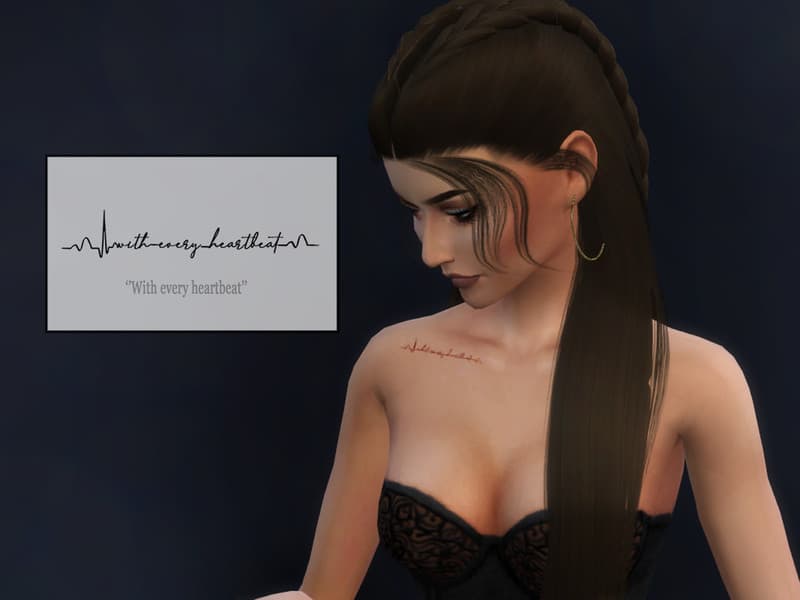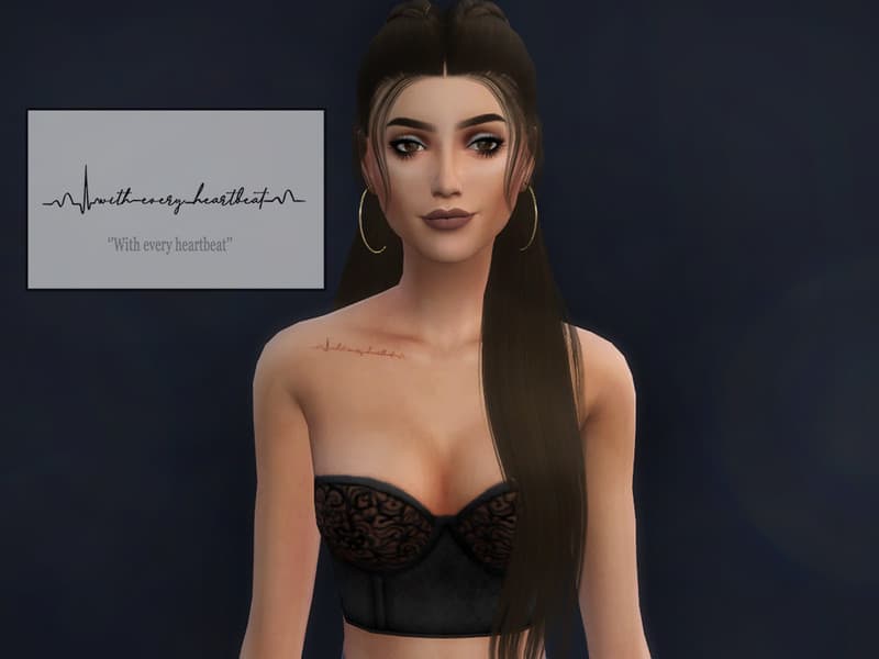 Our database contains only the highest quality Sims 4 mods that meet the most stringent requirements, like Collarbone ”With every heartbeat” tattoo Sims 4 Mod. This guarantees that our visitors have access to the most exclusive and useful files.