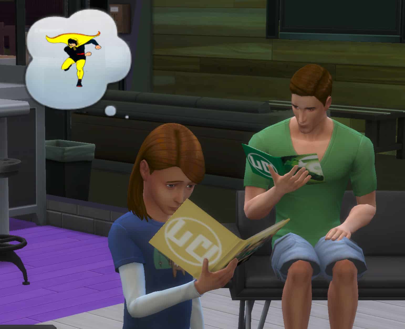 If your Sims have too little time properly to inculcate the five Character Values from Parenthood (Responsibility, Emotional Control, Conflict Resolution, Empathy, and Manners) into their children, they can find help…in comic books!