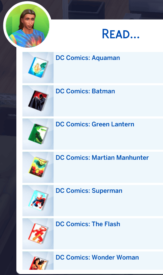 Updated 12/13/24. Now included is a “Stack of Comic Books” clutter item that also serves as a bookshelf pre-loaded with all ten comic books for §50 and a txt file that reminds what the effects of each books are.