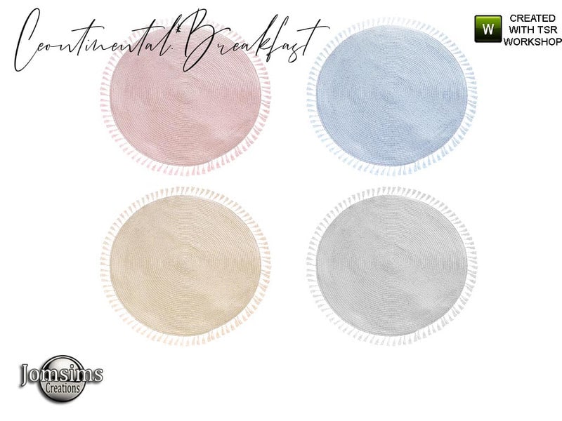Our database contains only the highest quality Sims 4 mods that meet the most stringent requirements, like Continental breakfast round rugs Sims 4 Mod. This guarantees that our visitors have access to the most exclusive and useful files.
