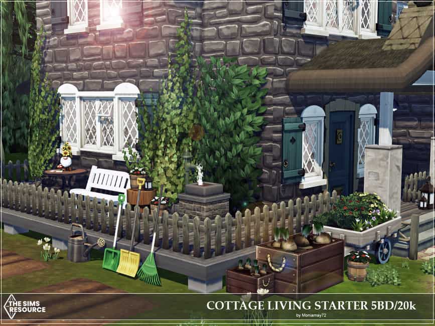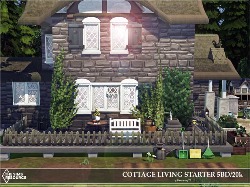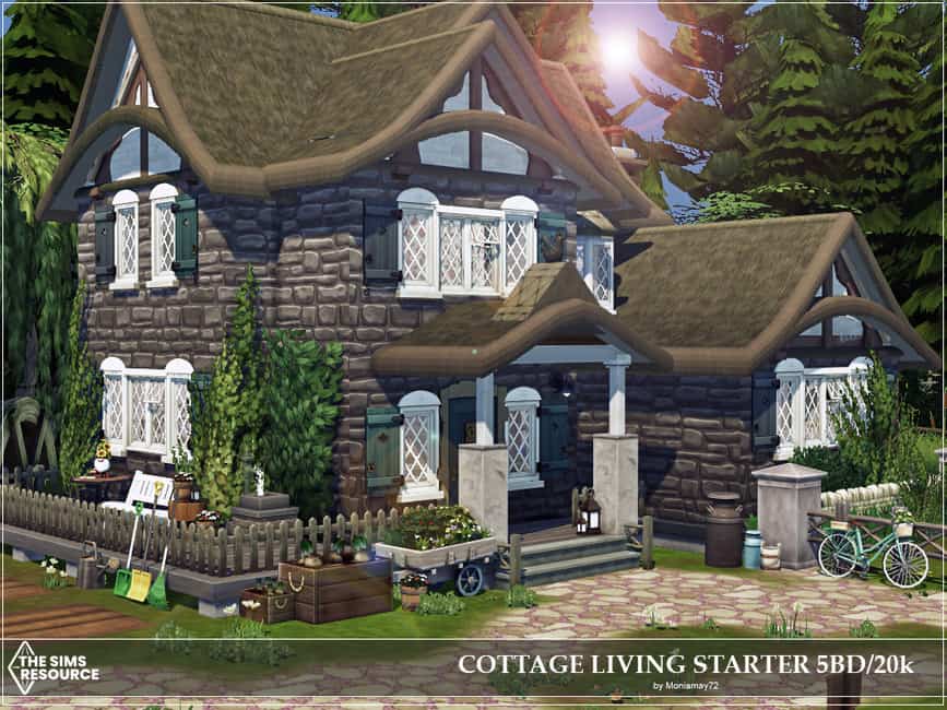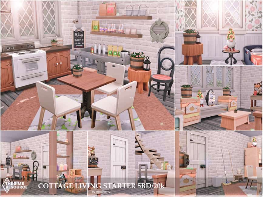 I have built Beautiful Cottage Living Starter Home for your sims. A comfortable cheap 20k simoleons lovely decorated starter home for any sim on a budget.This starter house is spacious enough for a family of eight,but enough simoleons to start the game with just 2 sims. The house has 5 bedrooms,2 bathrooms, kitchen and living room. No Custom Content was used.