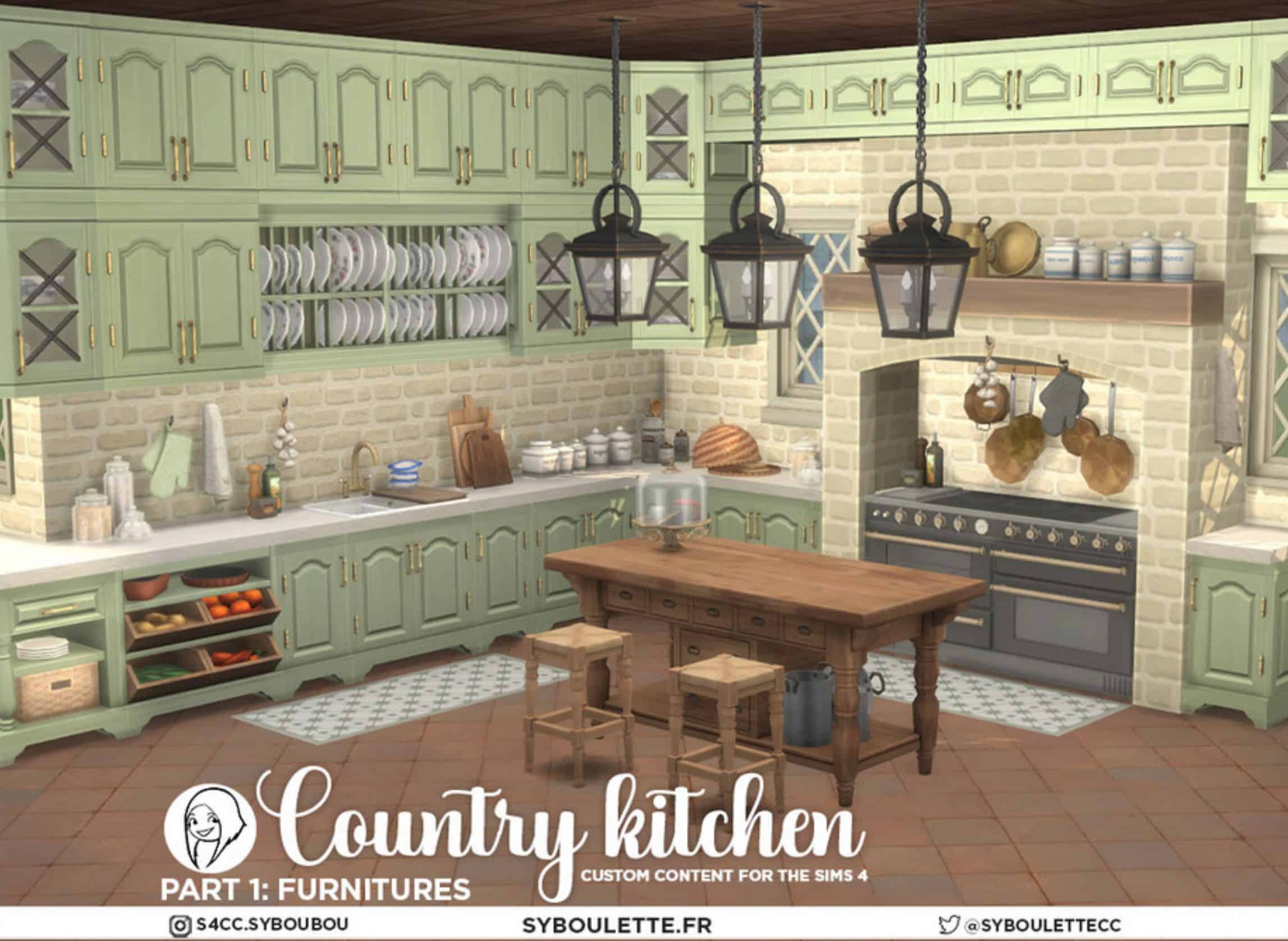 The counters and cabinets have been thoughtfully designed with accent elements, offering a versatile look in 11 swatches of wood tones and pastel painted colors. I wanted this kitchen to fit seamlessly into any home, exuding rustic sophistication. To truly bring the heart of the home to life, Ive added a plethora of clutters that breathe authenticity and fill the room with vibrancy.