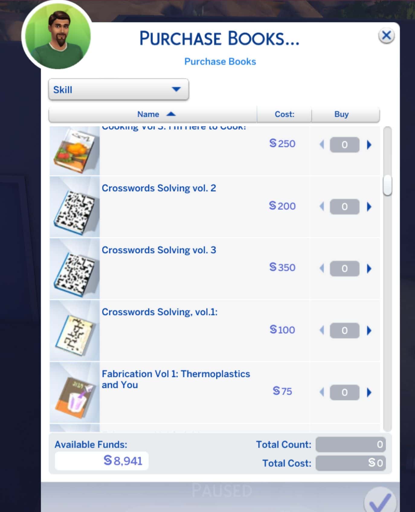 You can purchase skill books via bookshelf or computer but also you can buy it with regular crosswords for casual solving through the dedicated pie menu on the computer (computer > ‘Crosswords’ pie menu > ‘Purchase Crosswords’)