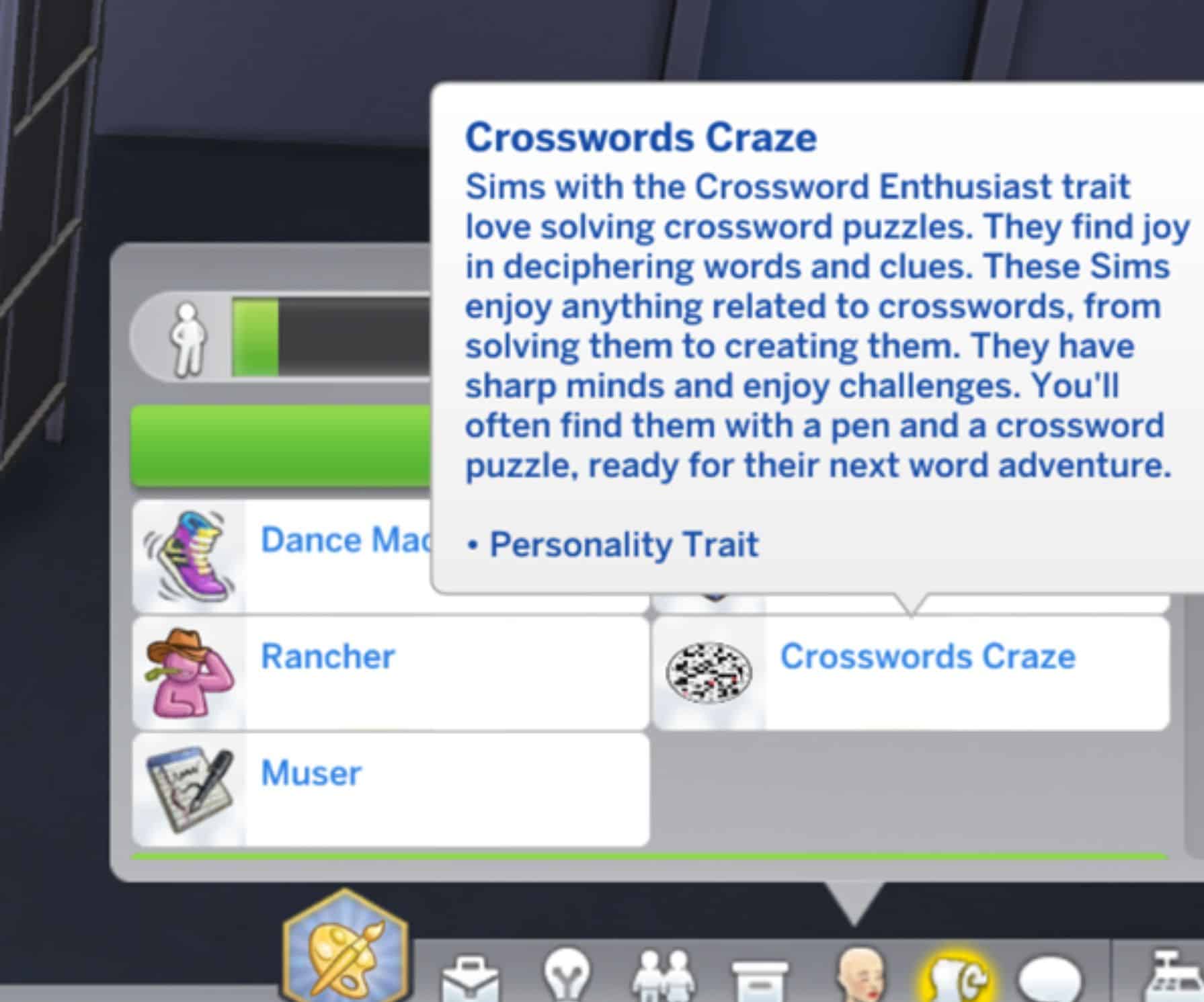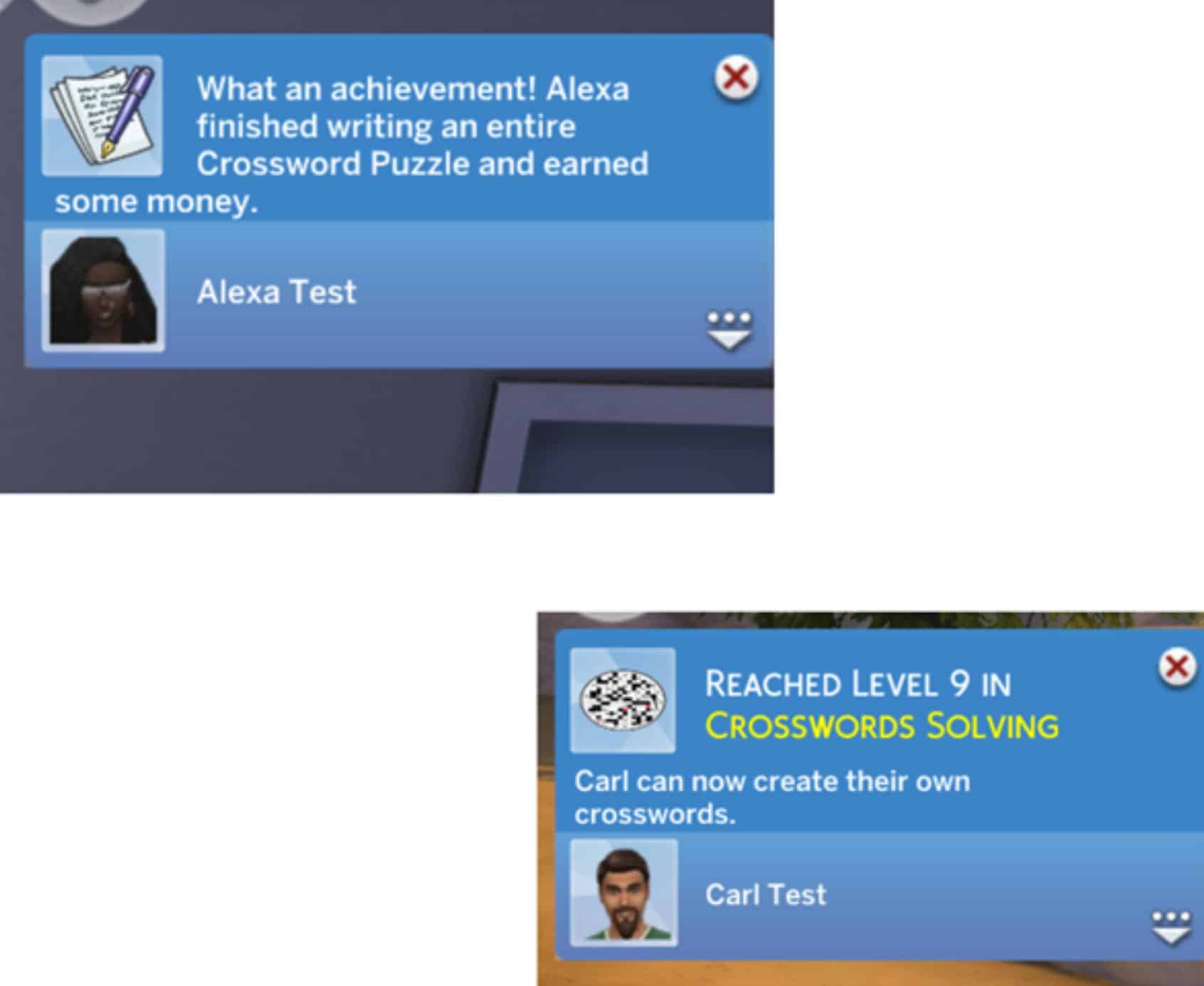 When a Sim reaches level 10 in the skill, they will gain the ‘Crossword Enthusiast’ trait, which unlocks additional interactions and notifications.