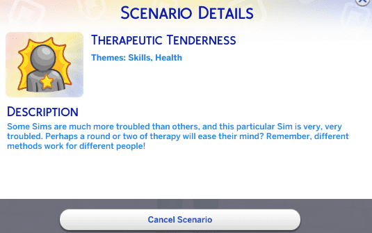 Our database contains only the highest quality Sims 4 mods that meet the most stringent requirements, like Custom Scenario: Therapeutic Tenderness Sims 4 Mod. This guarantees that our visitors have access to the most exclusive and useful files.