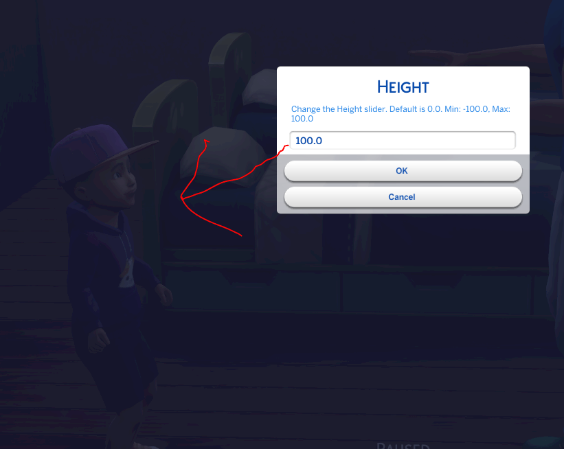 Setting the slider to 100.0 would change the Sim to the maximum height (tallest).