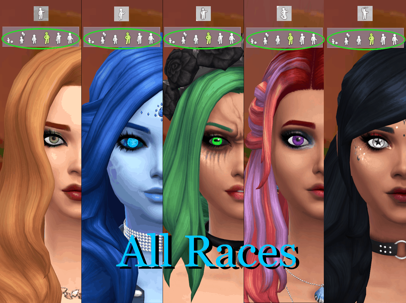 All Races: This pack is for those who want the eyes available to Humans, Aliens, Vampires, Mermaids and Spellcasters!