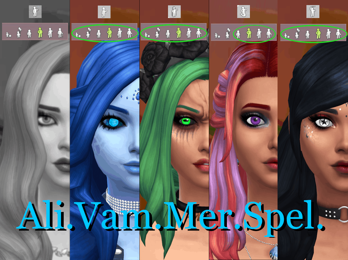 Ali.Vam.Mer.Spel: This pack is for those who want the eyes available to Aliens, Vampires, Mermaids and Spellcasters!