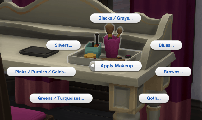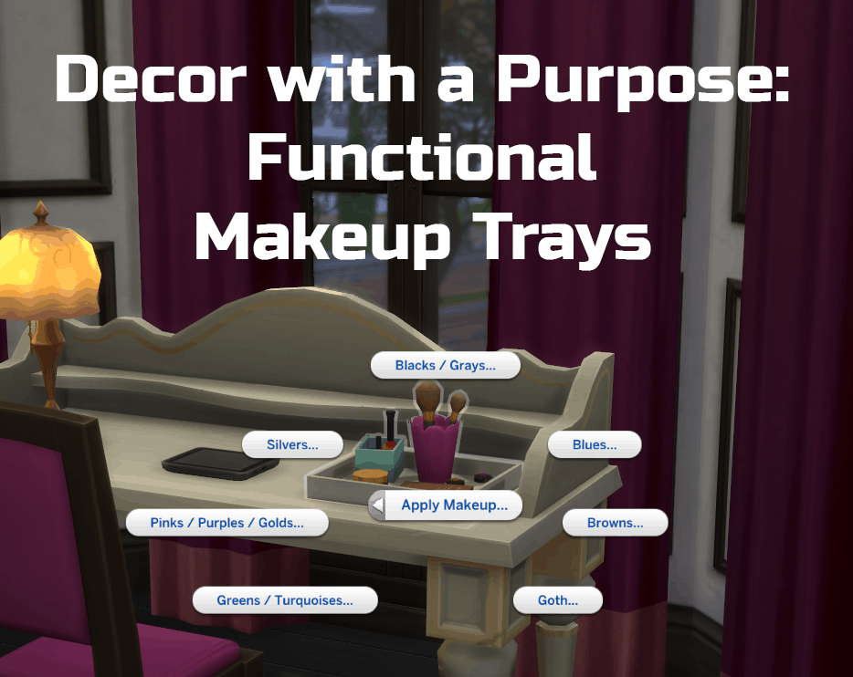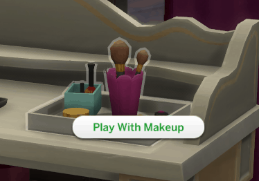 This item should only be placed on a desk (although it can be off to the side). There’s no animation to apply makeup if the sim isn’t sitting at a desk. Maybe I can find a fix for this in the future.