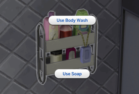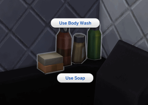 Continuing my mission to make decorative items useful, I’ve made something more custom than just moving some tuning around. Now when a sim is taking a shower or a bath they have an option to use these body wash and soap objects and get a nice little confidence boost!
