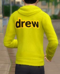 After not seeing much Celebrity branded CAS items within Sims 4 CC, I decided to create some of my own, starting with the Drew House merch. Since this was my 1st attempt at styling up some CC, the logo might not be proportianal between the swatches, but they are close enough. This is a recolour of a base game, maxis hoodie.