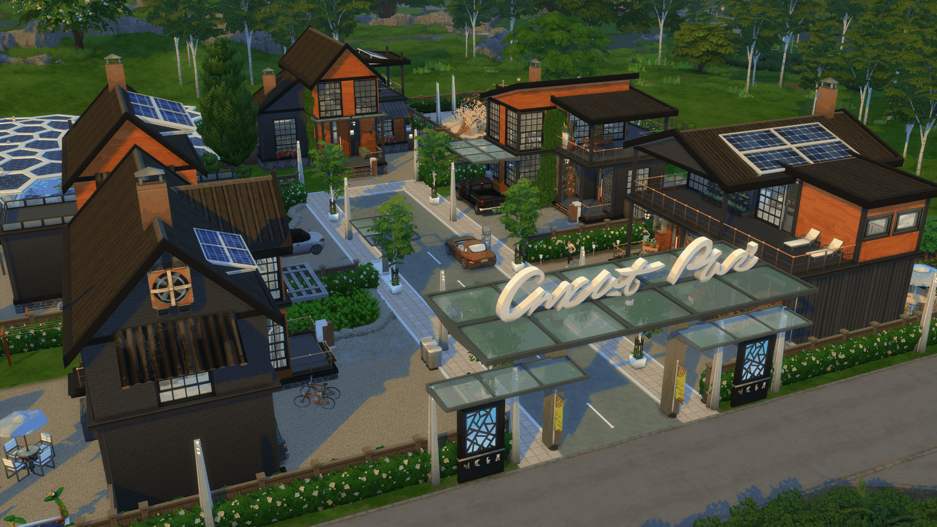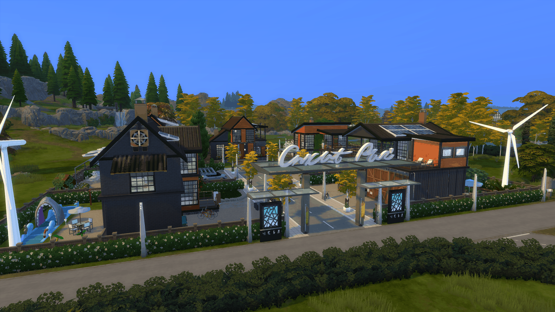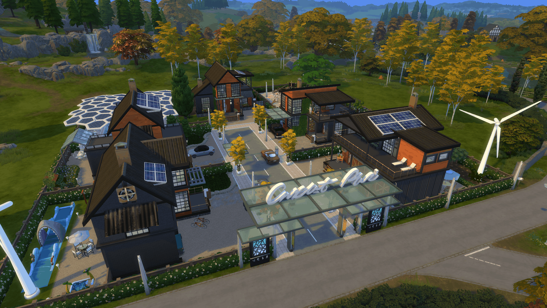 With the newest expansion coming out very soon I created a Neighborhood with Ecological stuff inside of it. 5 houses where your sims can choose to live in.