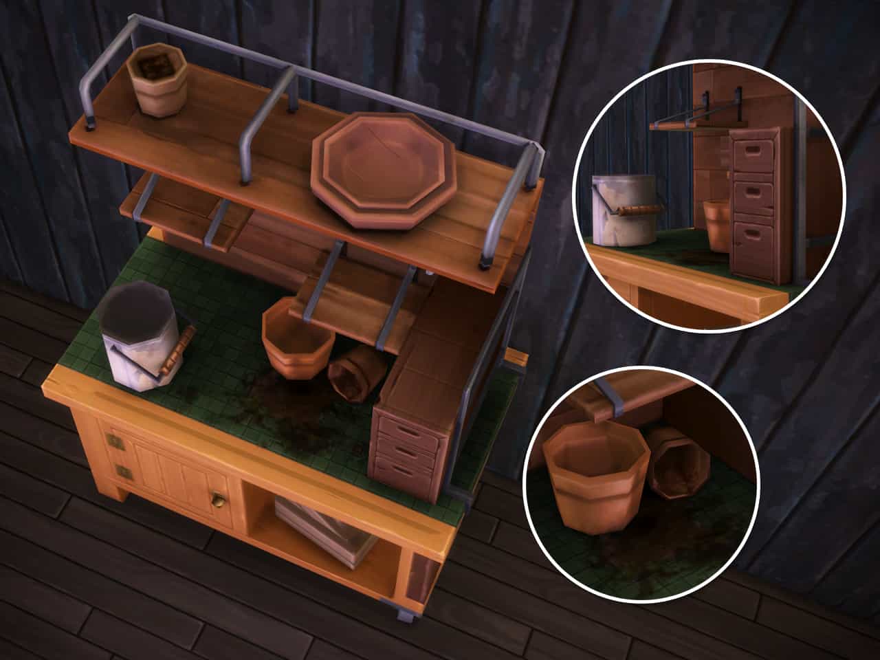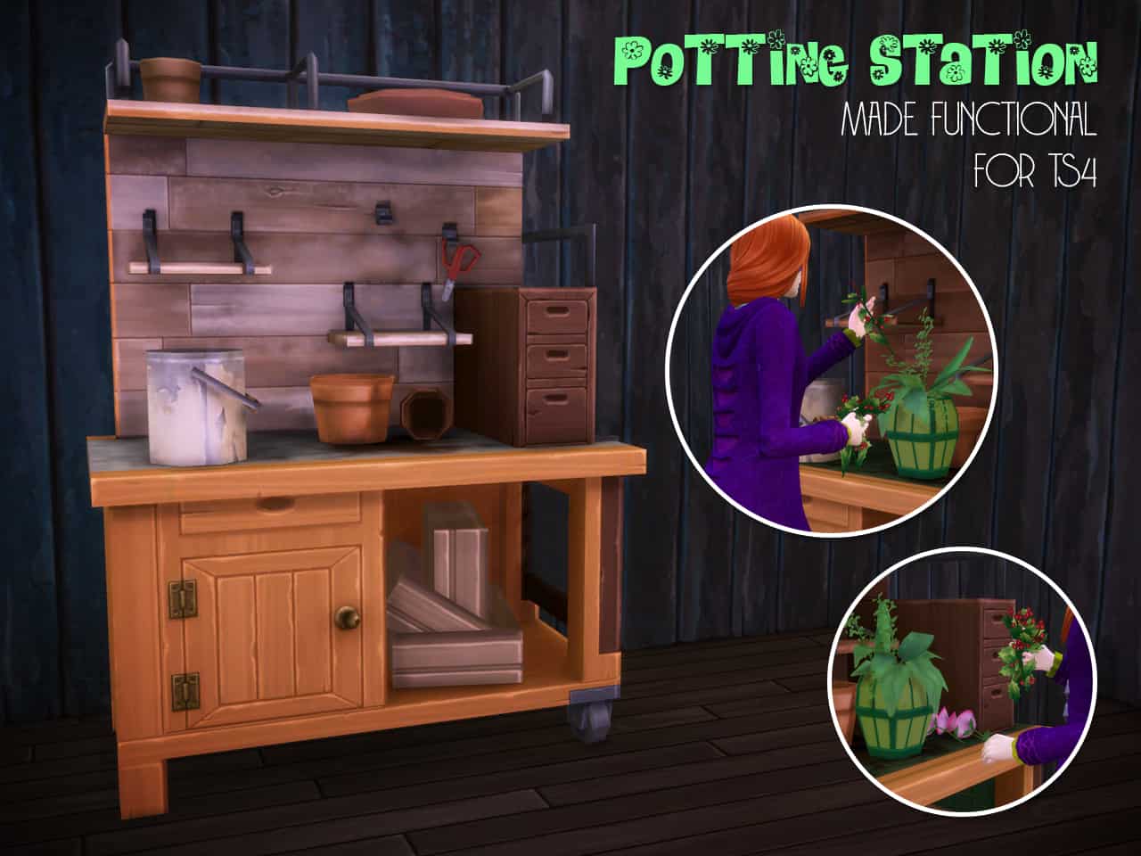I was browsing through the content that came with Eco Lifestyle and stumbled upon this pretty ?potting station? which, for some reason, was decorative only. I didn?t see much of a point in having such a huge decoration, especially not since we DO have a flower arranging table in TS4, sooo… I decided to fix it!