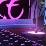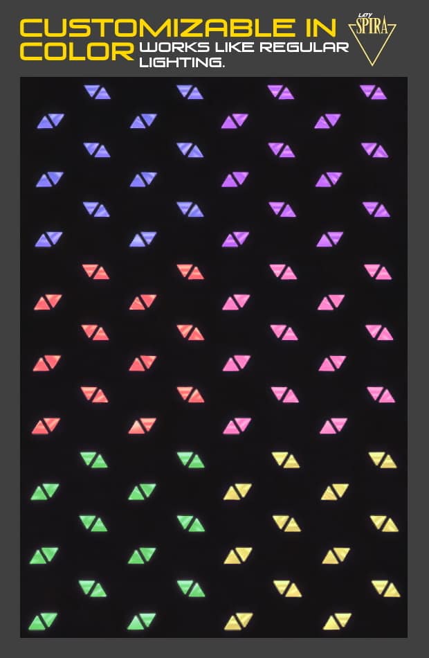Triangle-shaped floor panels that function as lighting, inspired by the interior design of THE EDEN CLUB from Detroit: Become Human.