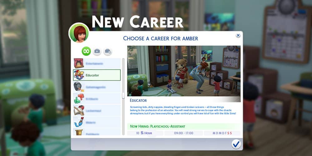 Have you played all the carrers in The Sims 4 and want to have new options for your Sims to work? Then we want to show you our newest mod-project: an educator-carrer for your Sims!