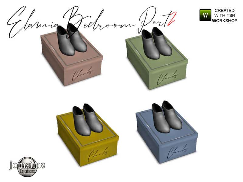 Our database contains only the highest quality Sims 4 mods that meet the most stringent requirements, like elamia bedroom part 2 box shoes deco 1 shoes on it Sims 4 Mod. This guarantees that our visitors have access to the most exclusive and useful files.