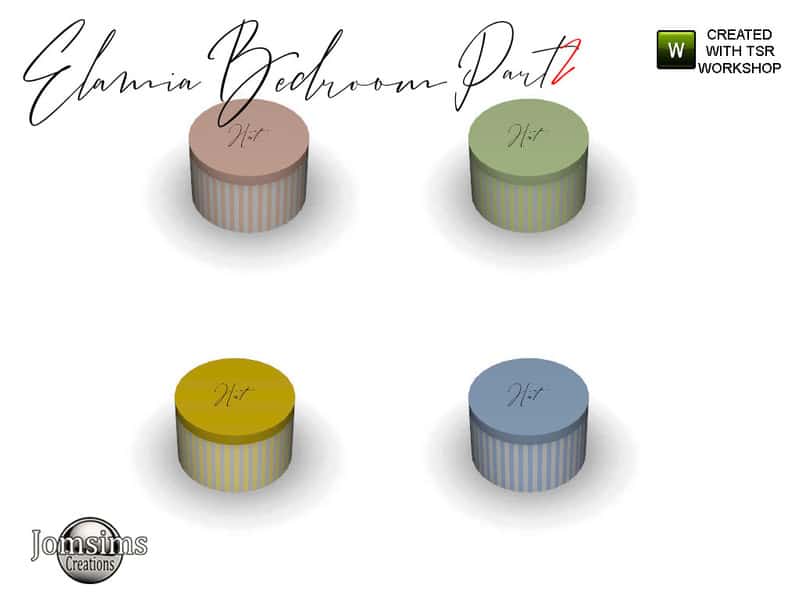 Our database contains only the highest quality Sims 4 mods that meet the most stringent requirements, like elamia bedroom part 2 hat box without hat Sims 4 Mod. This guarantees that our visitors have access to the most exclusive and useful files.