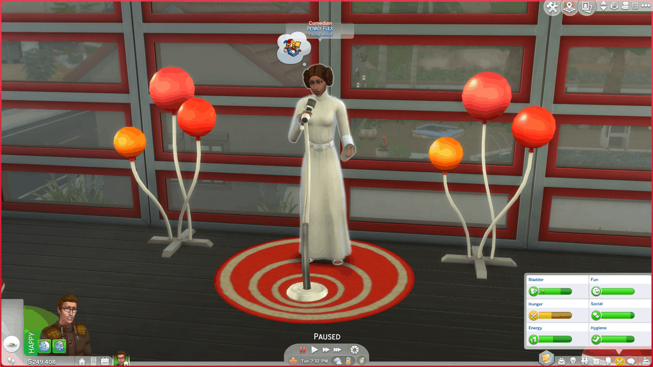 You can put more mannequins in the lot and set uniforms to other NPC types who work in this lot. However, remember that no more than 10 mannequins can be put in a lot. In this example, besides Darth Vader and Darth Maul outfits for Mixologists, I set Princess Leia and Luke clothes for Comedians; and Aayla Secura and Boba Fett clothes for Entertainers.