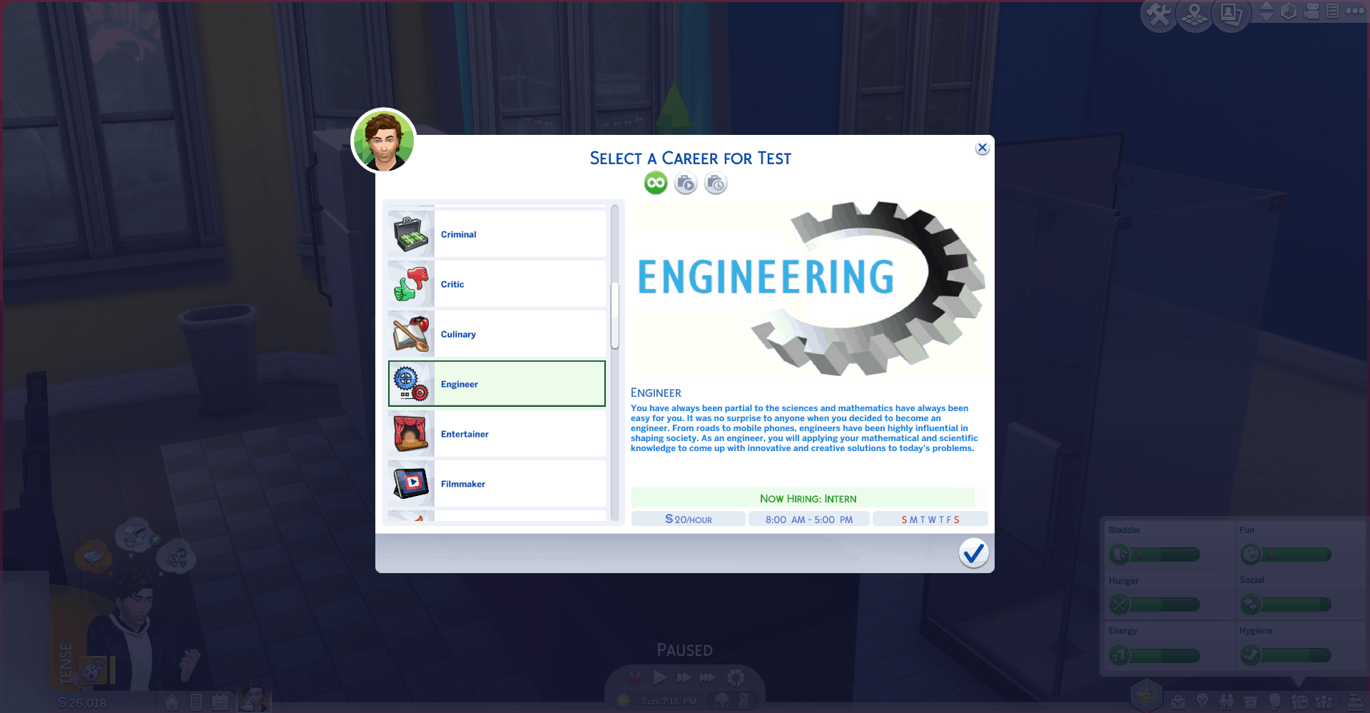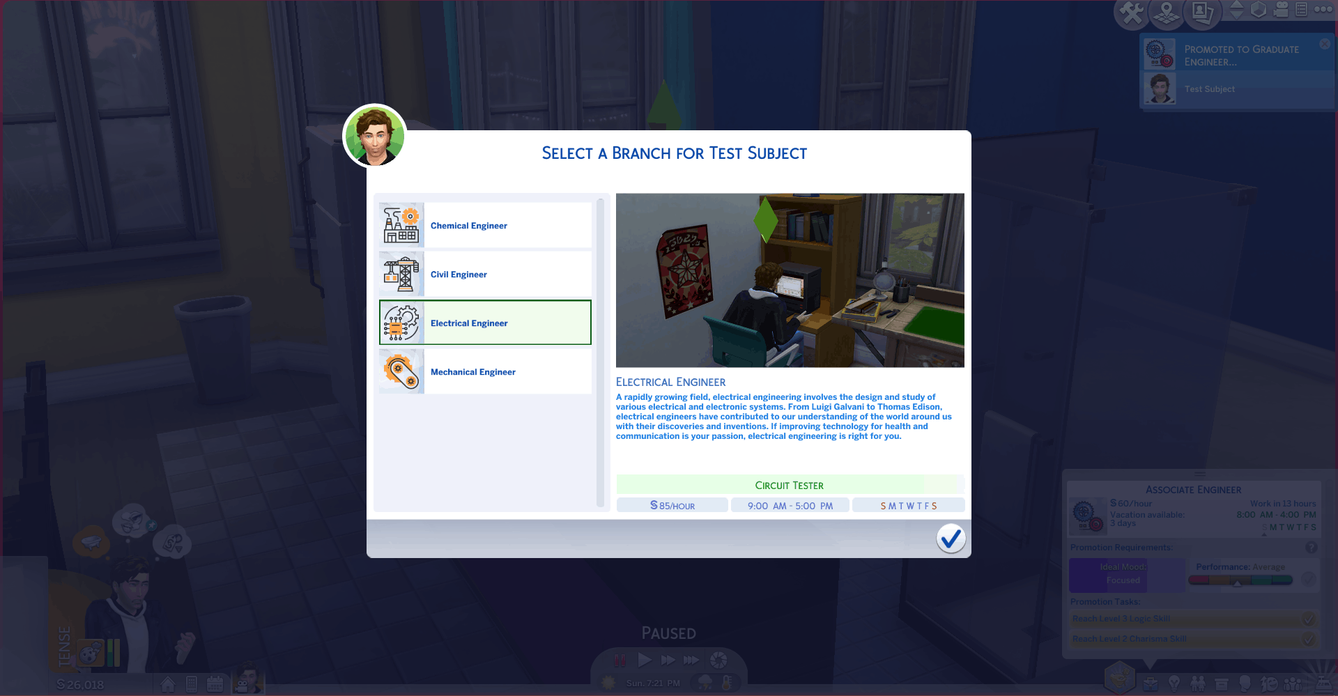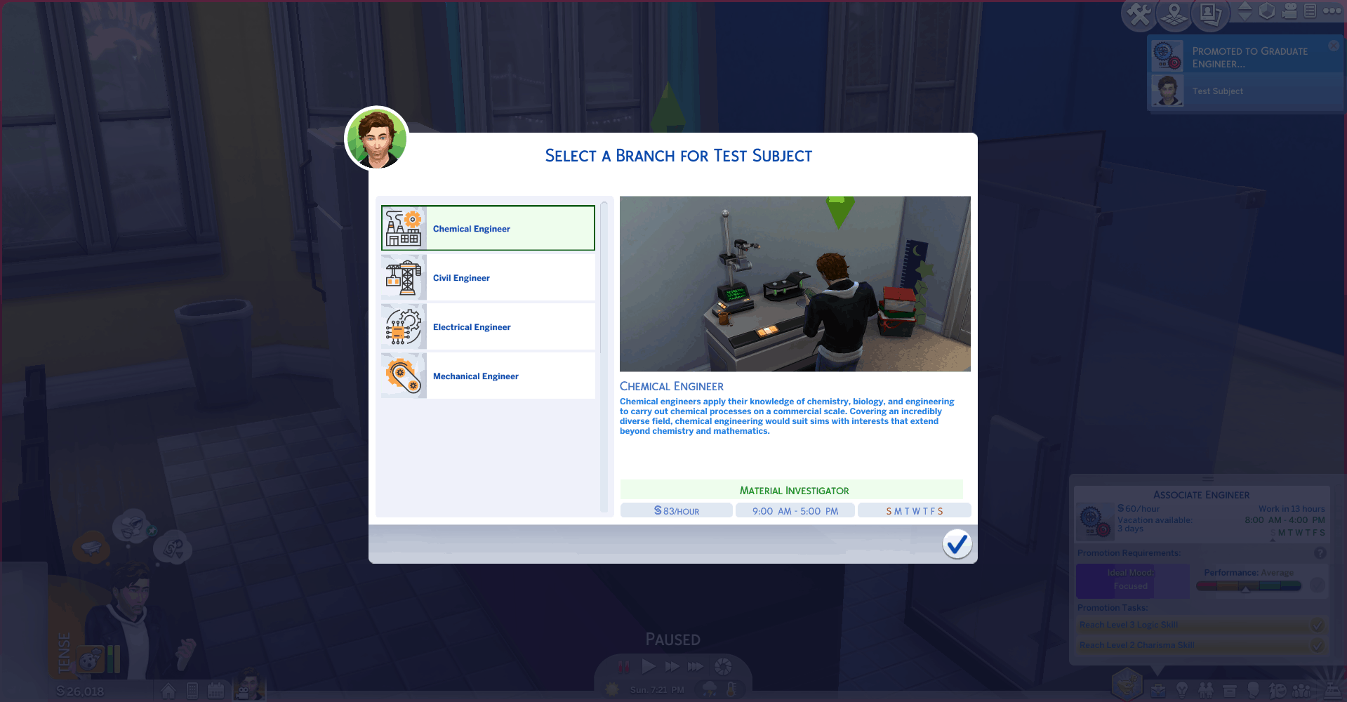 Hey all! I’ve been looking around recently and I’ve noticed at lack of engineering careers so I decided to make one. This has four main branches your sims can choose form. These branches include: Chemical Engineering, Civil Engineering, Electrical Engineering, Mechanical Engineering. Hope you guys have fun with it.
