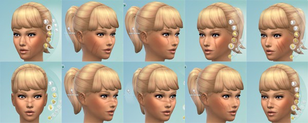 The multi-pack adds 5 copies of the scars into the skin details tab, so you can mix-n-match.