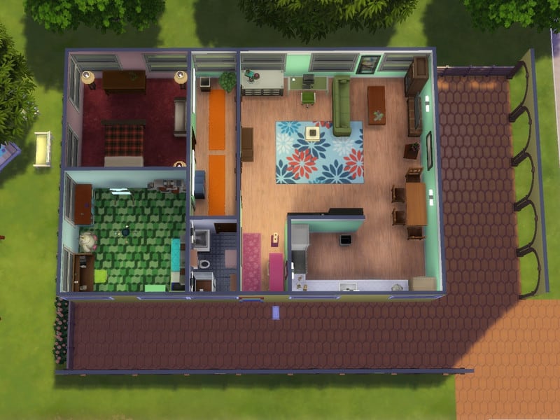 A small and cozy apartment for a family. It has 2 bedrooms, living room with dining area andkotchen nook, and a nice backyard.