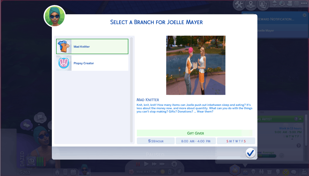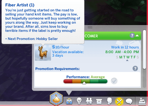 You’re just getting started on the road to selling your hand knit items. The pay is low, but hopefully someone will buy something of yours along the way. Just keep working on your brand. After all, sims love to buy terrible items if the label is pretty enough!