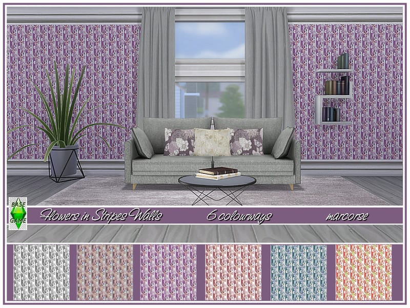 A dense, vertical design of flowers and stripes in three colours. 6 options. Found in Wallpaper. Price : 3.