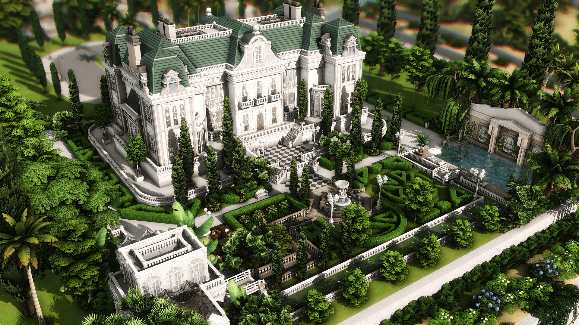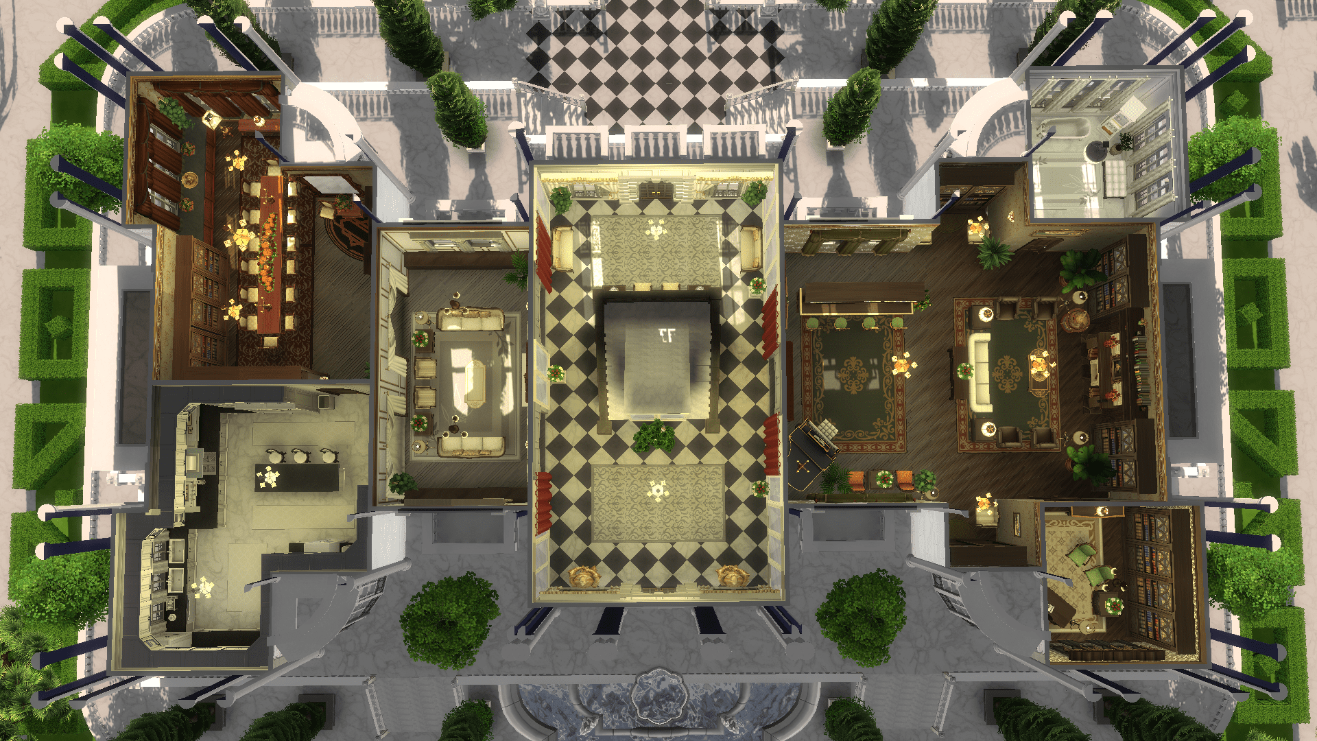 The perfect palace for a royal family or an eccentric celebrity. Enjoy the glamourous life your Sims deserve! This huge palace has 4 bedrooms, 2 bathrooms, 3 living rooms and a beautiful pool area, all made to be luxurious and full of glamour for your Sims.