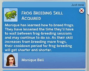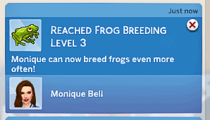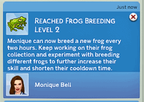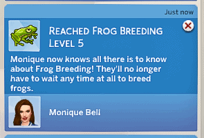 Level 4 Frog Breeding: Frog Breeding cooldown reduced to 40 Sim minutes.