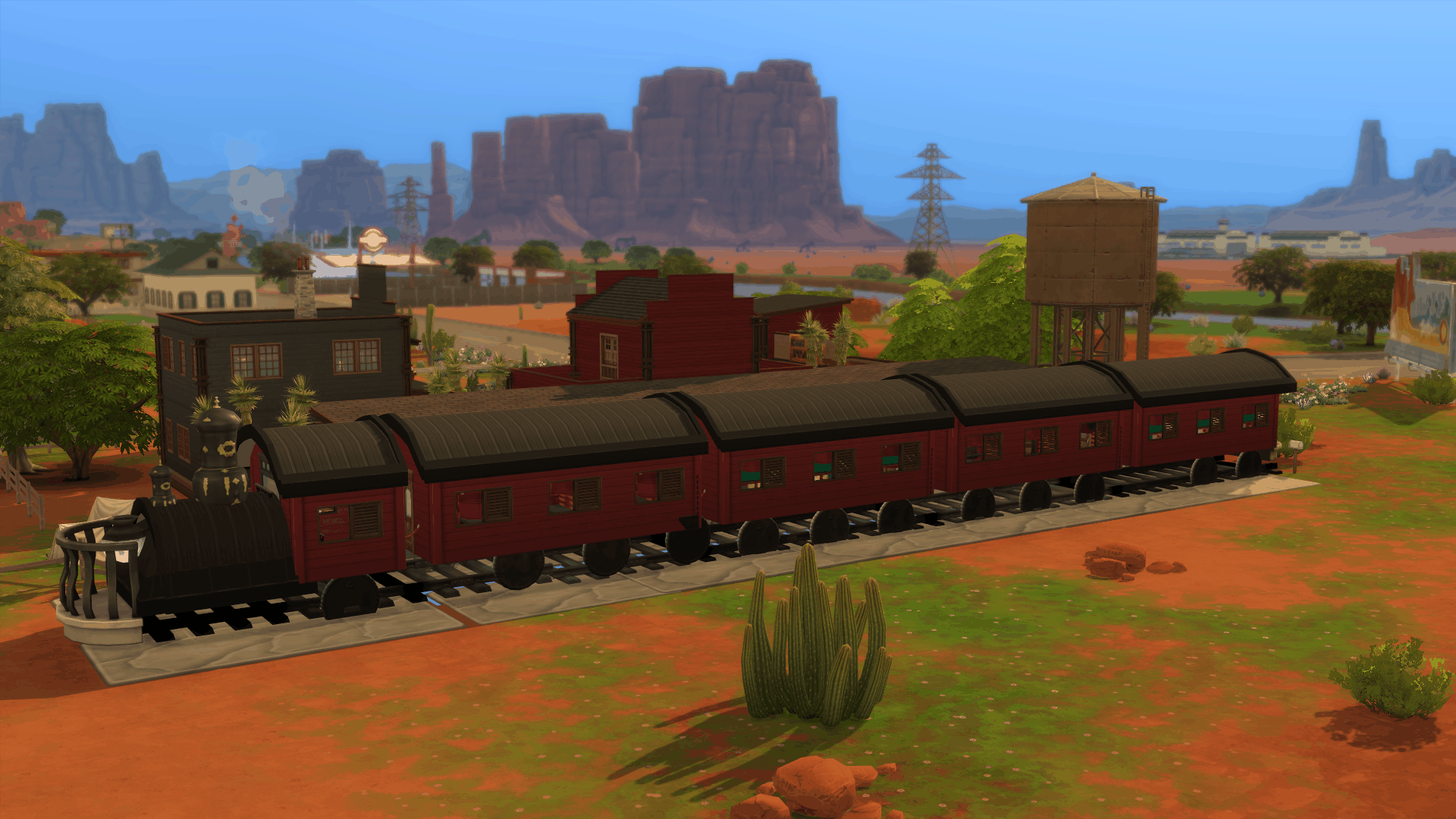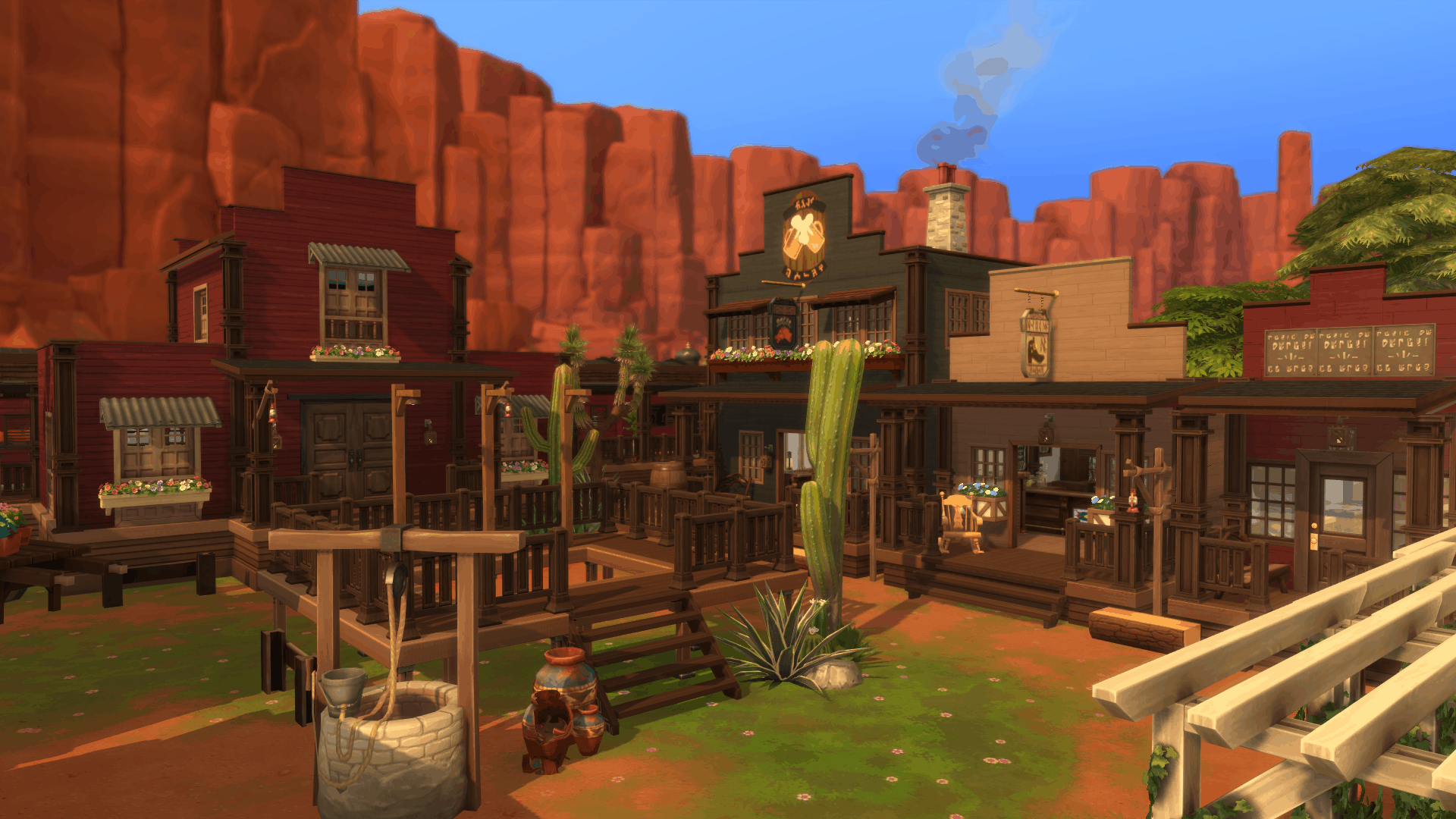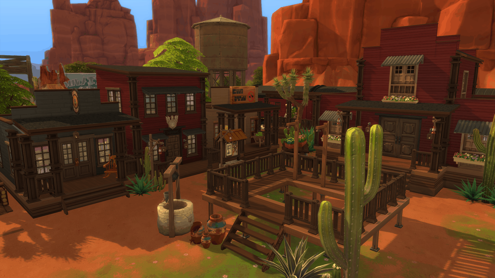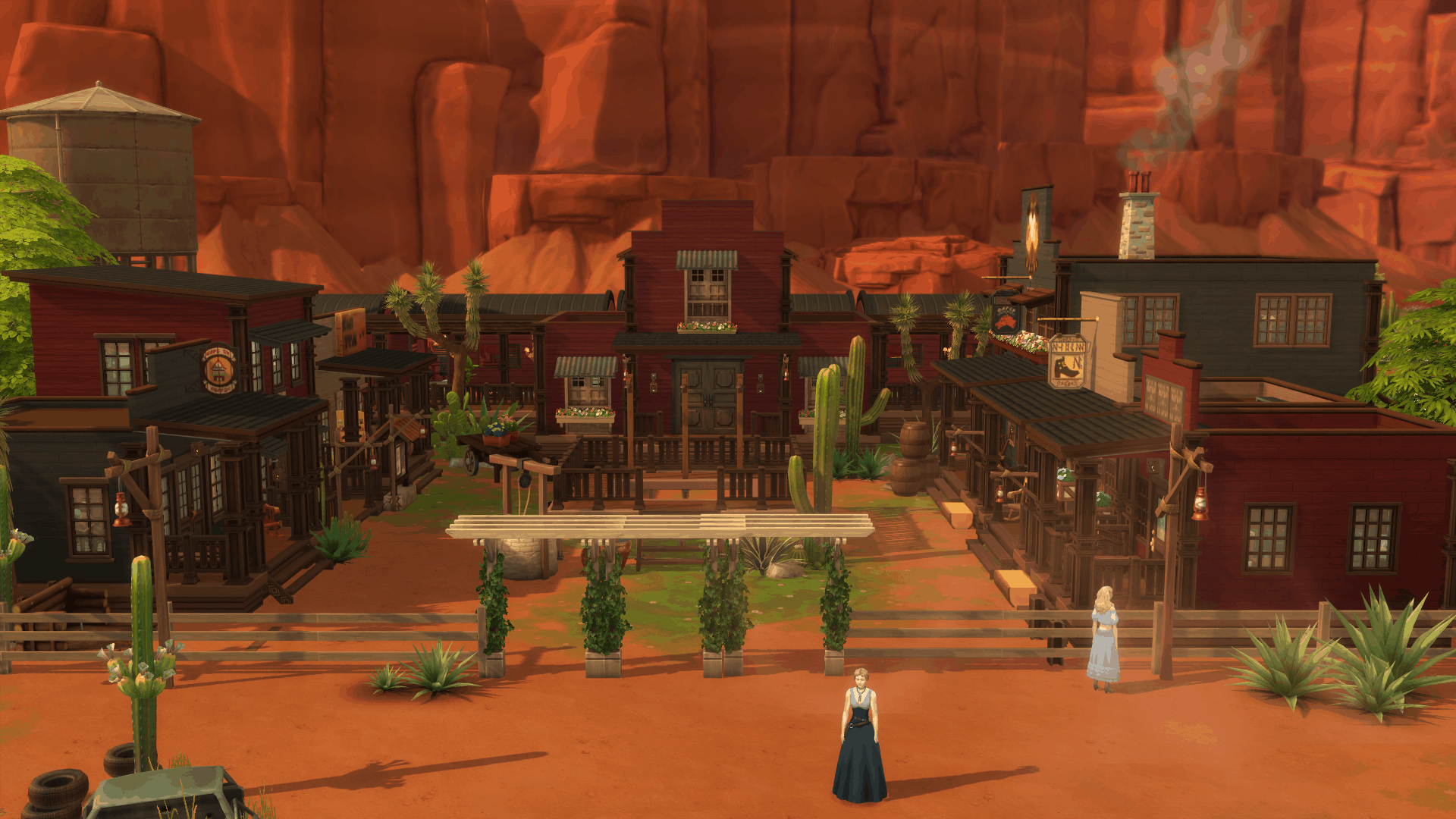 Let your sims become the fairest Cowboy or Cowgirl in Simland by visiting this beautiful Western Town. Arrive at the Train station to visit the wildest saloon of the wilderness. A grocery store wil help you out on your journey and have a good night sleep in the softest bed of the Western hotel.