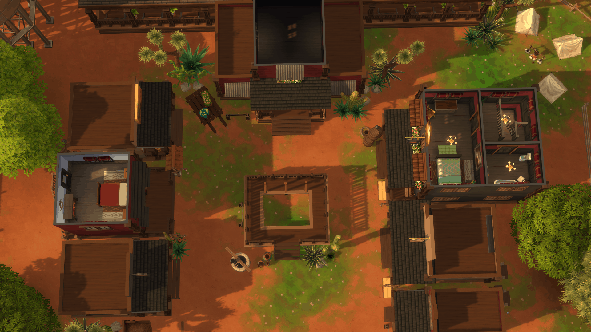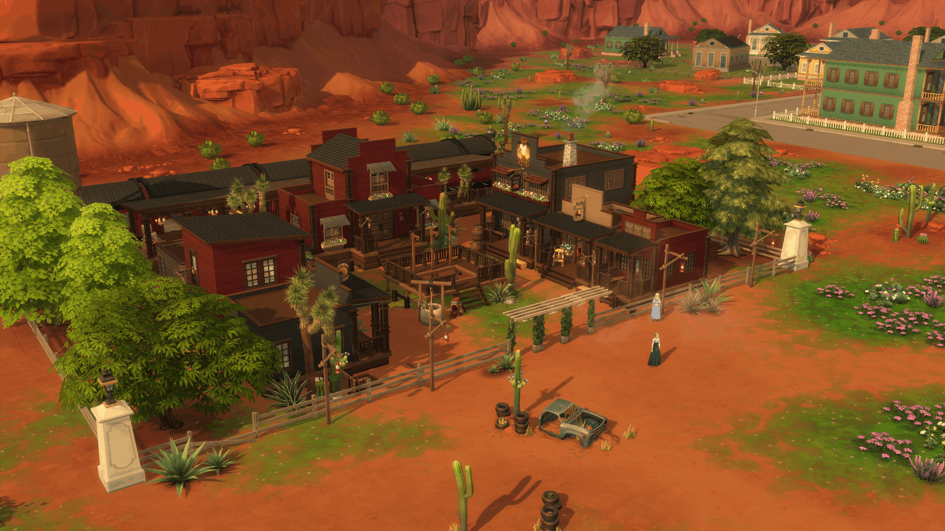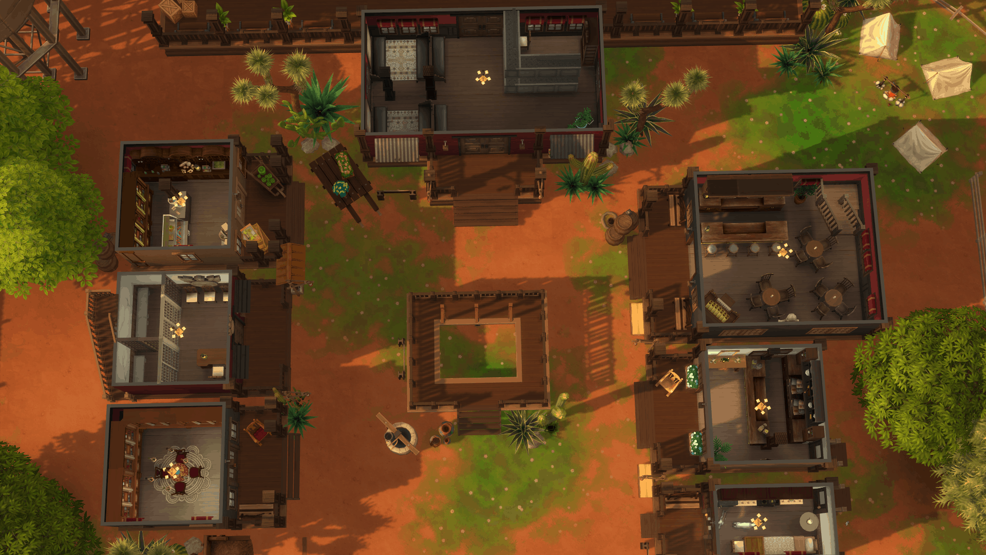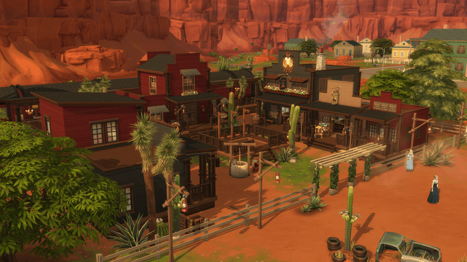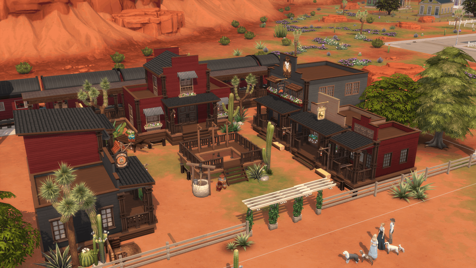 Let your sims become the fairest Cowboy or Cowgirl in Simland by visiting this beautiful Western Town. Arrive at the Train station to visit the wildest saloon of the wilderness. A grocery store wil help you out on your journey and have a good night sleep in the softest bed of the Western hotel.