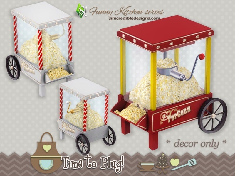 Our database contains only the highest quality Sims 4 mods that meet the most stringent requirements, like Funny kitchen – Time to Plug – popcorn maker Sims 4 Mod. This guarantees that our visitors have access to the most exclusive and useful files.