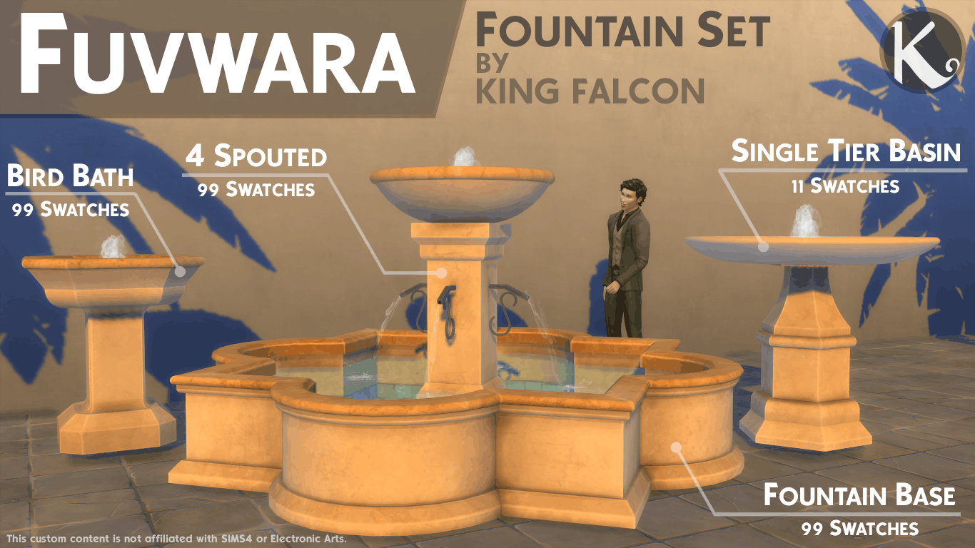 Our database contains only the highest quality Sims 4 mods that meet the most stringent requirements, like Fuvwara – Fountain Set Sims 4 Mod. This guarantees that our visitors have access to the most exclusive and useful files.